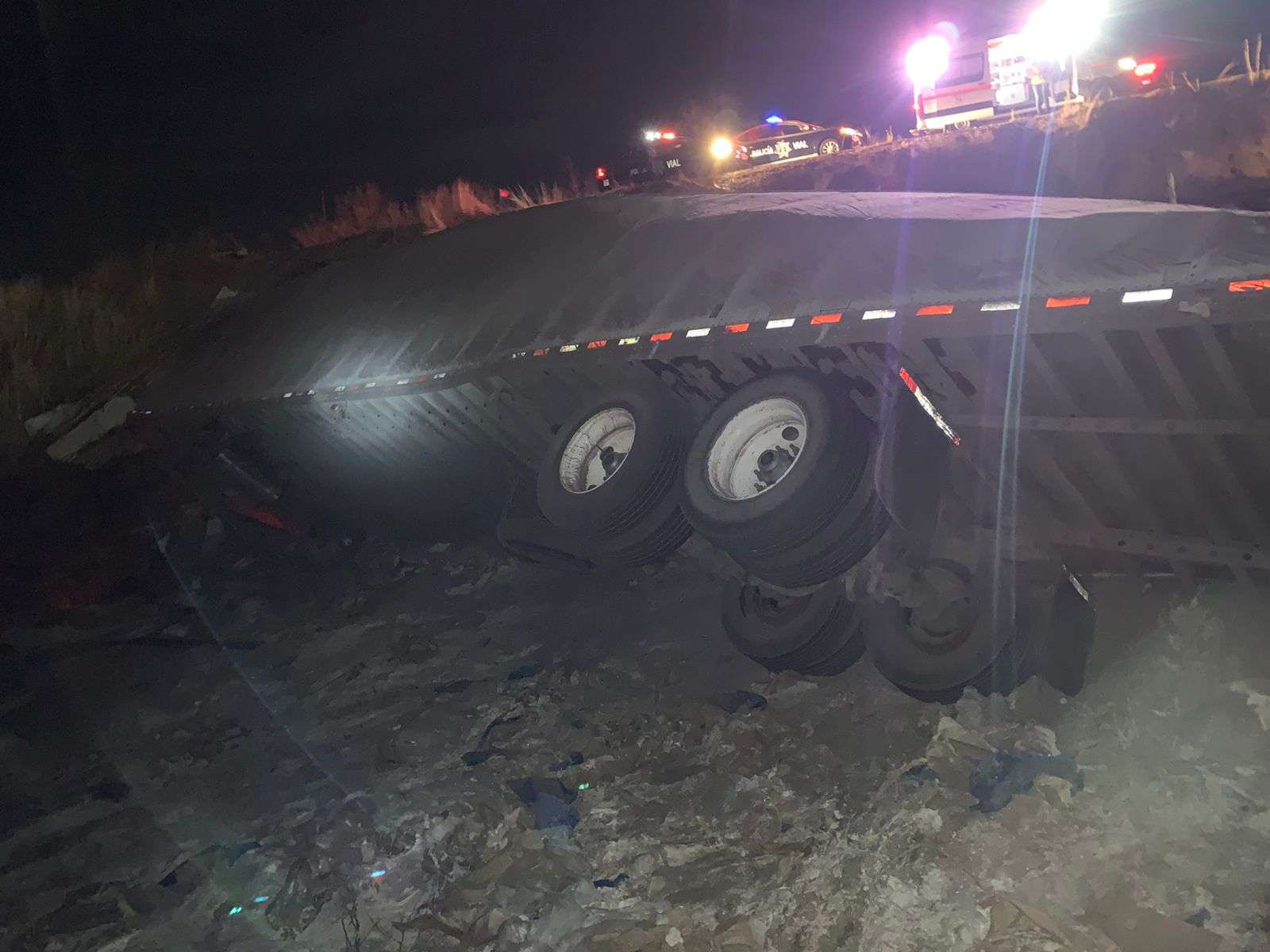 Cuauhtémoc.- La Policía Vial de Cuauhtémoc atendió una volcadura de un tractocamión, ocurrida sobre el libramiento Manuel Gómez Morín, a las 20:41 horas del 12 de enero.