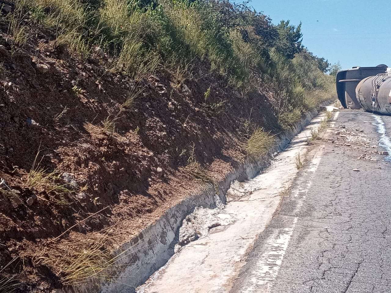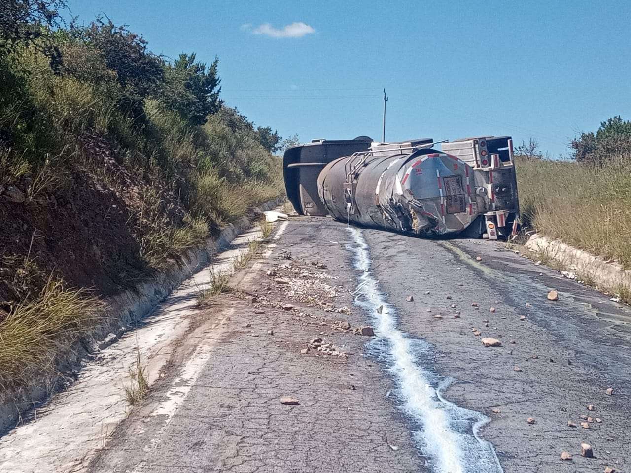 Cuauhtémoc. - Un tractocamión que transportaba leche volcó a la altura del kilómetro 1 del Periférico Manuel Gómez Morín en hechos ocurridos la tarde de este lunes.