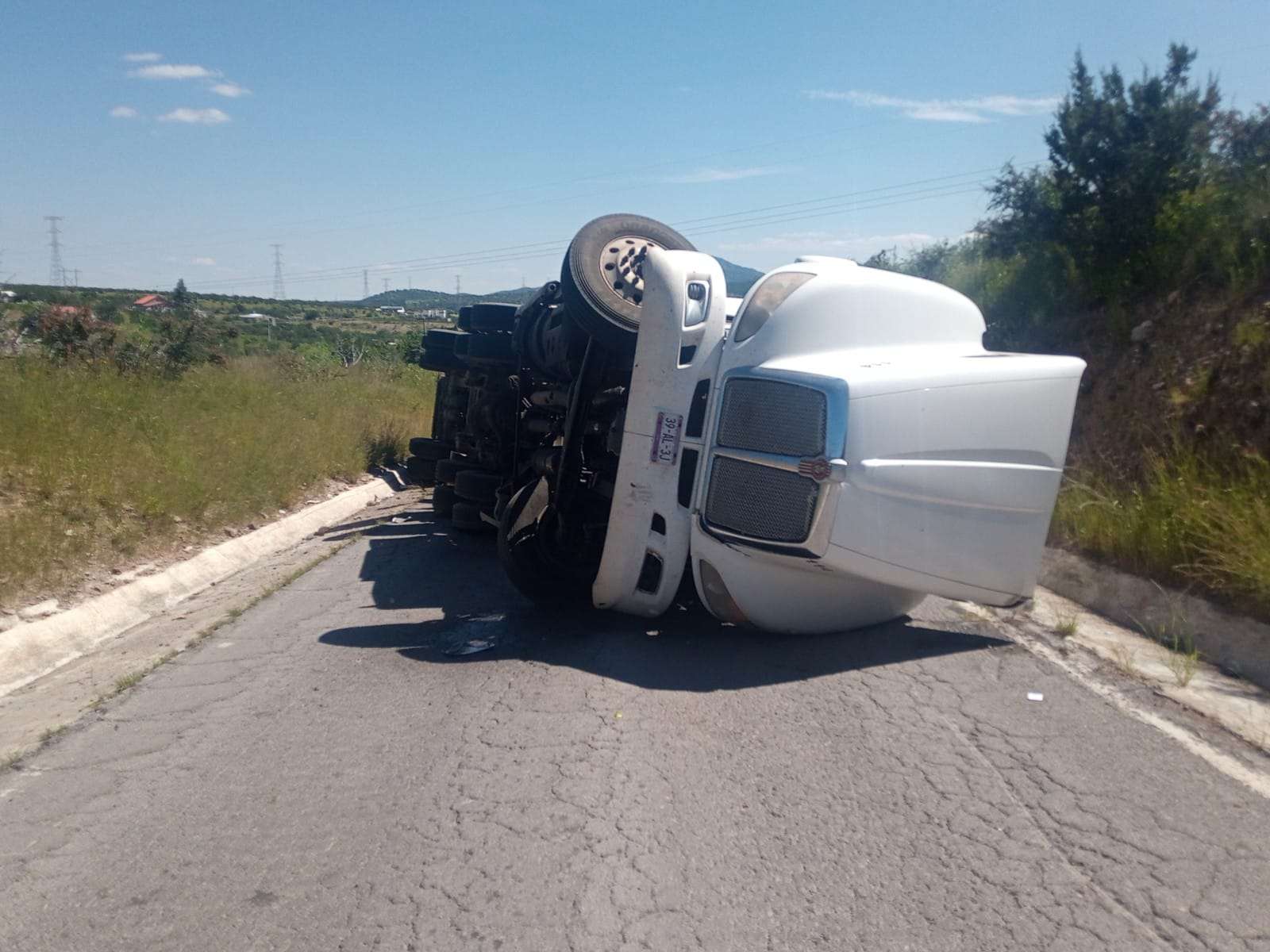 Se trata de un camión de la marca Keenworth, línea 660, modelo 2011 en color blanco, que era guiado por el señor Leonel Tarango Calderón, quien explicó que al venir circulando sobre la carretera Chihuahua - Cuauhtémoc, a una velocidad no precisada, toma la lateral del libramiento y es cuando pierde el control y se impacta contra la cuneta de la curva, para posteriormente salir proyectado; sobreviniendo así a la volcadura y quedando sobre el costado lateral izquierdo.