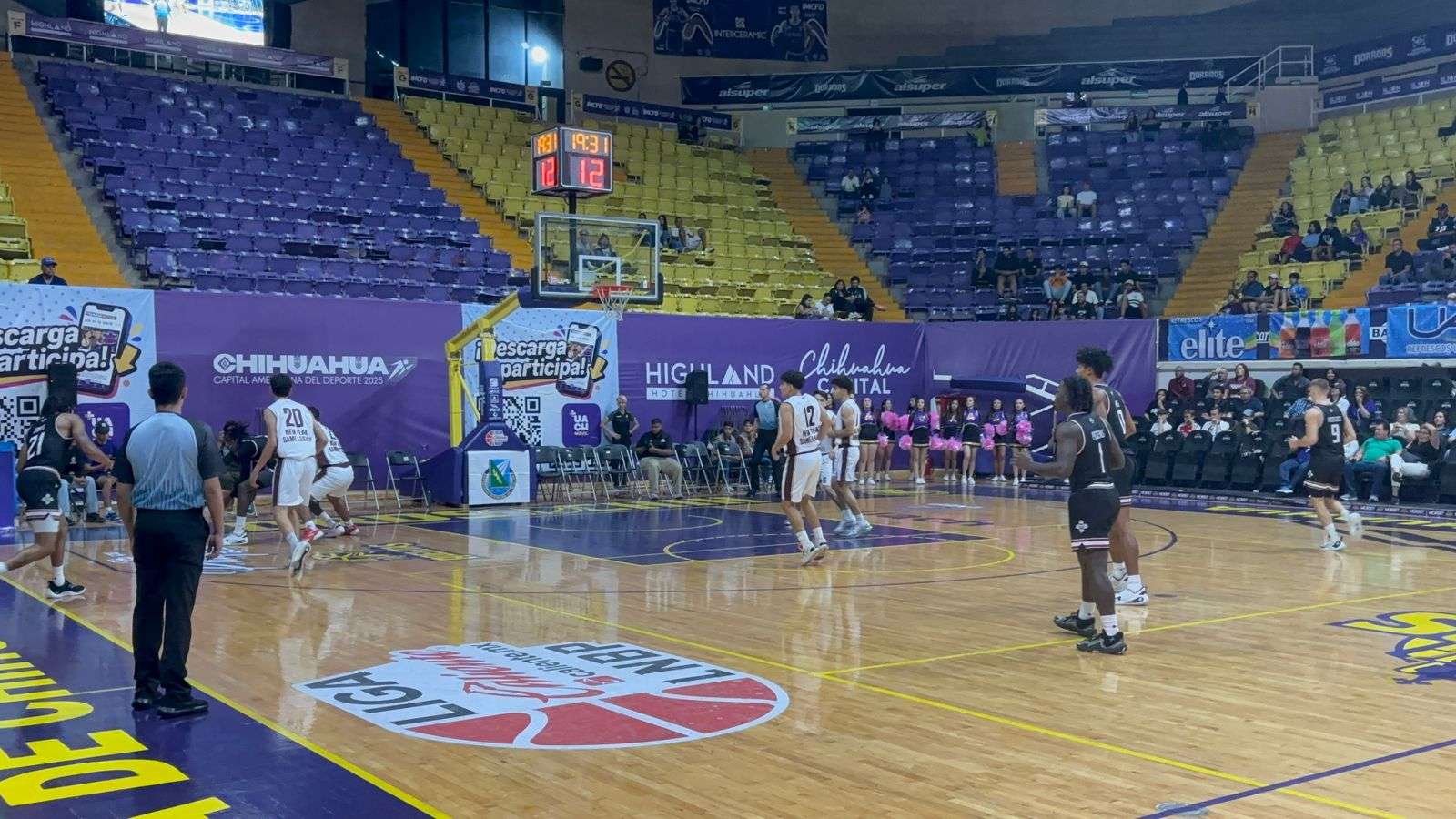 Chihuahua.- En punto de las 20:35 horas inició el juego entre Nuevo México State University y Los Dorados de Universidad Autónoma de Chihuahua, teniendo como escenario la catedral del basquetbol en el norte del país, el Gimnasio Manuel Bernardo Aguirre.