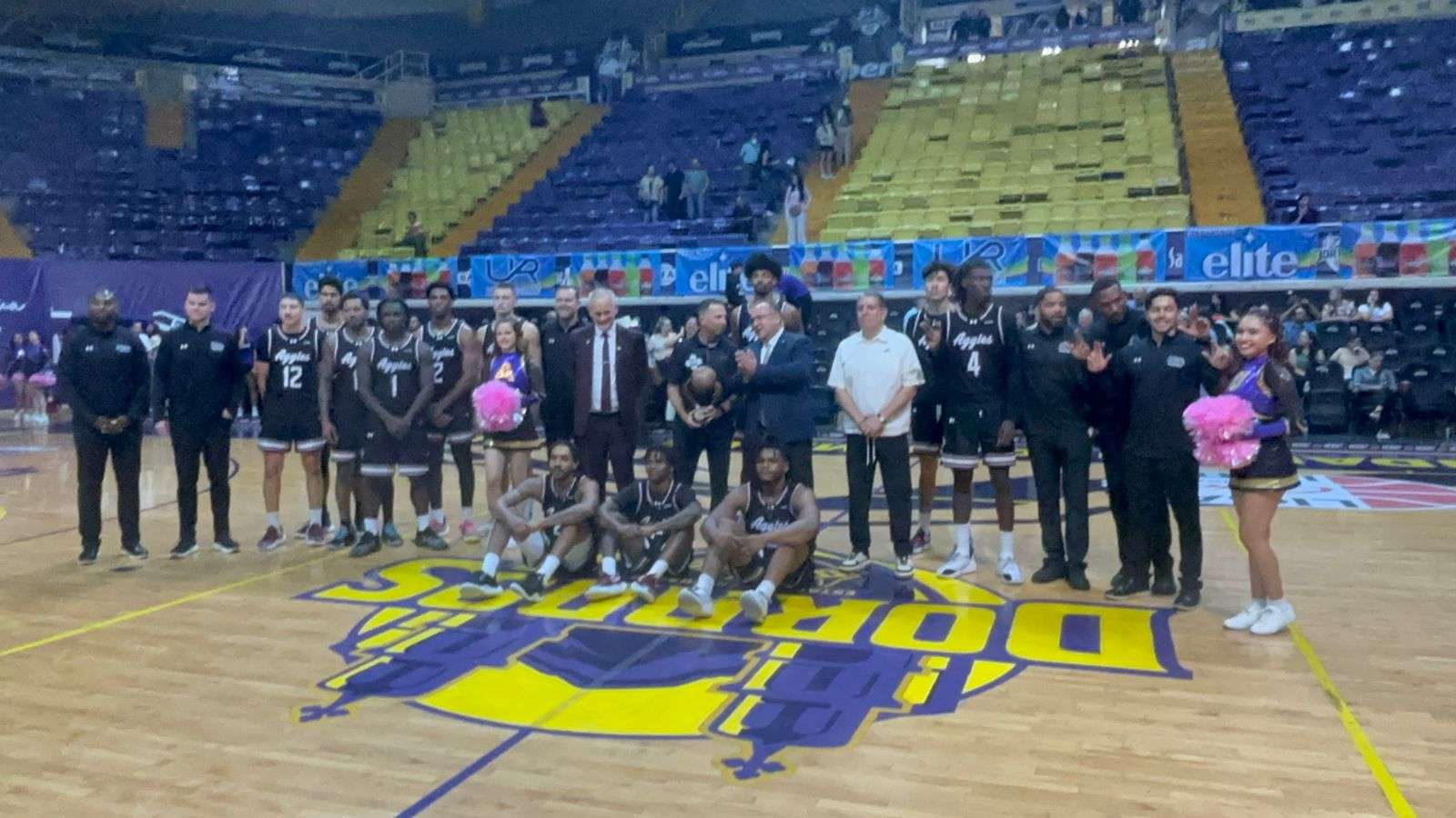 El rector de la Universidad Autónoma de Chihuahua, Luis Alfonso Rivera Campos, hizo entrega del trofeo al equipo de Nuevo México State University, quien se impuso con una mejor estrategia en la duela del Gimnasio Manuel Bernardo Aguirre, ante los Dorados de la Uach.