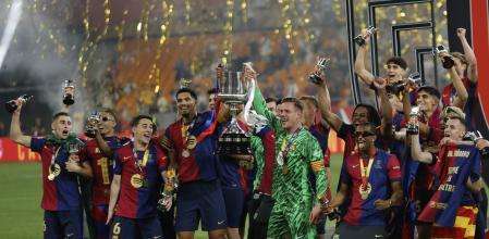 Los azulgranas han levantado en La Cartuja su 32ª Copa del Rey, el primero de los tres títulos que tiene disponibles el equipo de Hansi Flick.