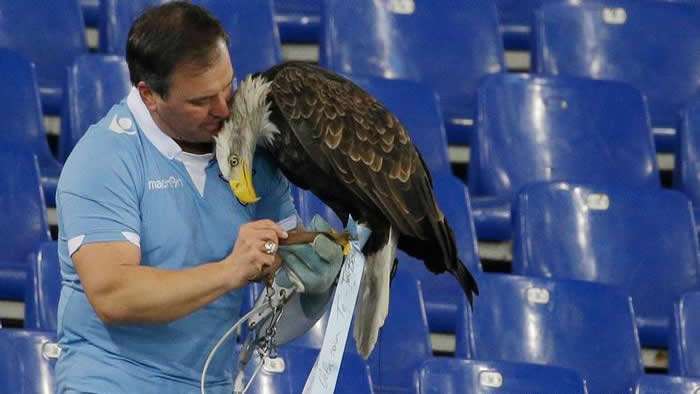 Roma.- El Lazio suspendió al entrenador de águilas Juan Bernabé después de que fuera grabado haciendo un saludo fascista delante de los aficionados. Bernabé ha sido el cetrero y el entrenador de la mascota águila de la Lazio, Olympia, desde 2010.