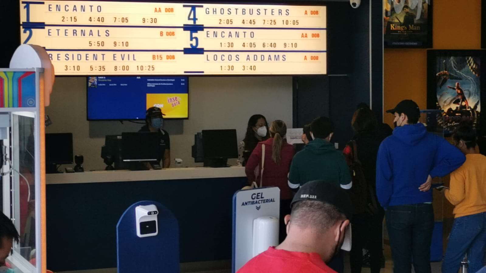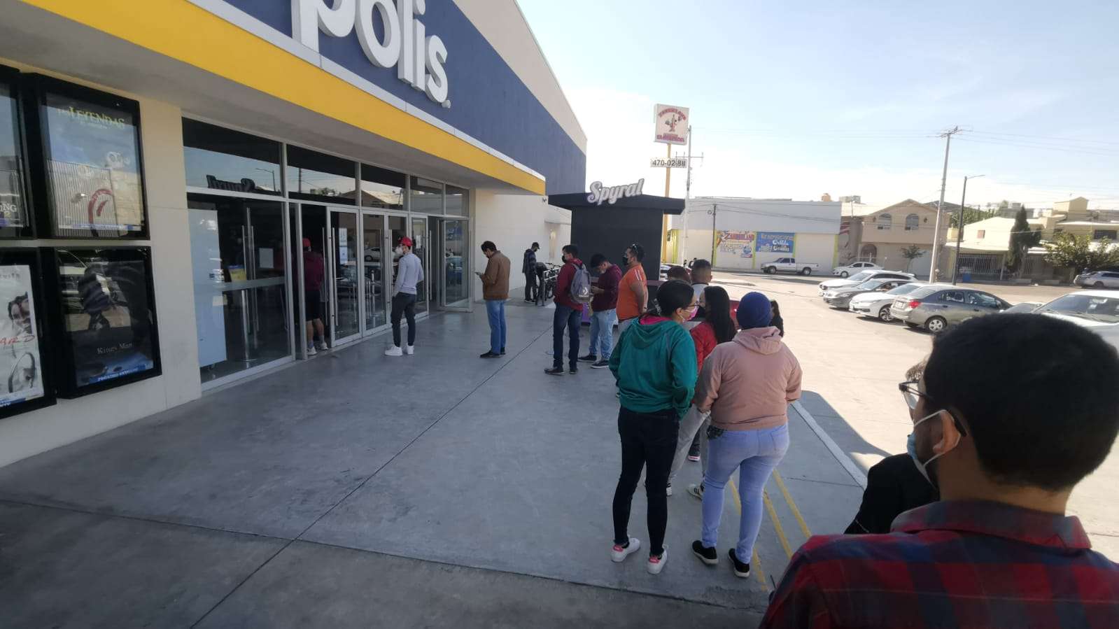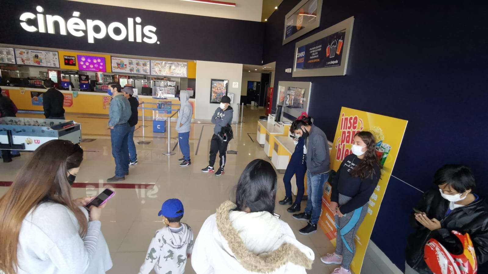 En Cinepolis que se ubica en Gómez Morín Oriente la larga fila se hizo desde temprano y se observó que llegaban hasta afuera del inmueble.