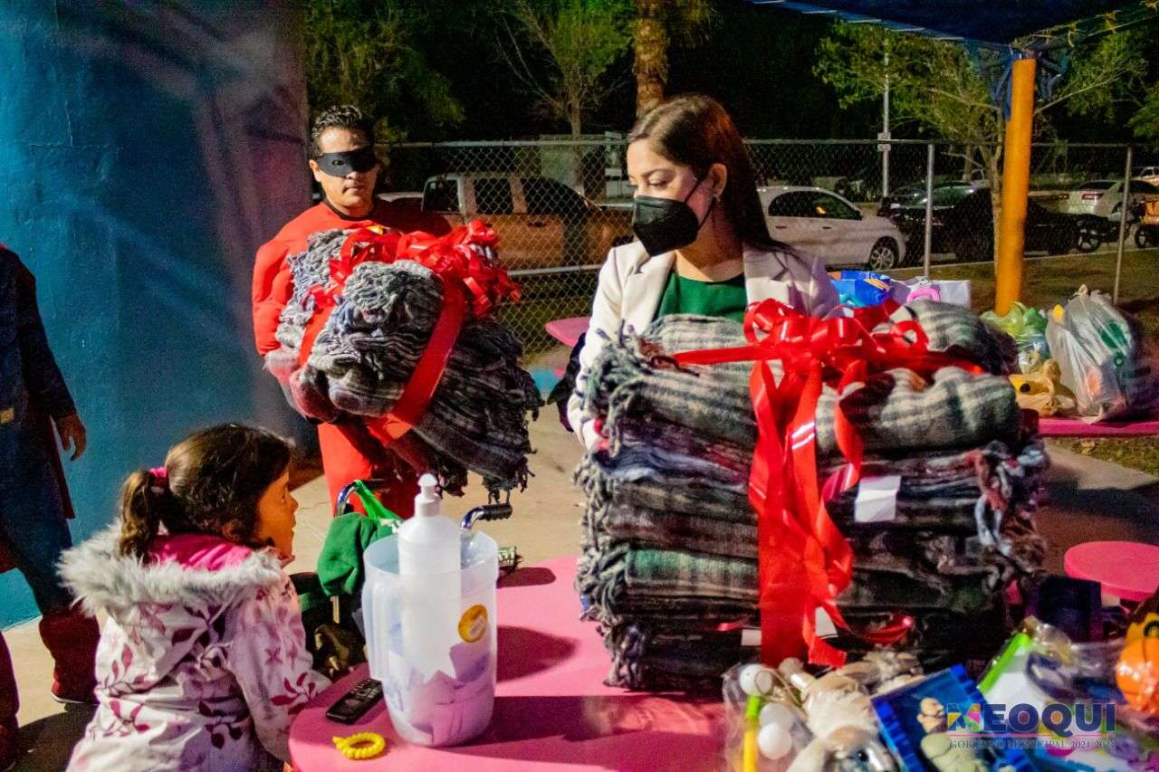 Meoqui.- Con motivo de llevar la navidad a los niños y niñas de Meoqui se llevó a cabo el Juguetón en el Parque del DIF, en el que la presidenta municipal Miriam Soto convivió con más de setenta familias y entregó paquetes de cobijas para abrigar a los pequeños meoquenses en esta temporada invernal.