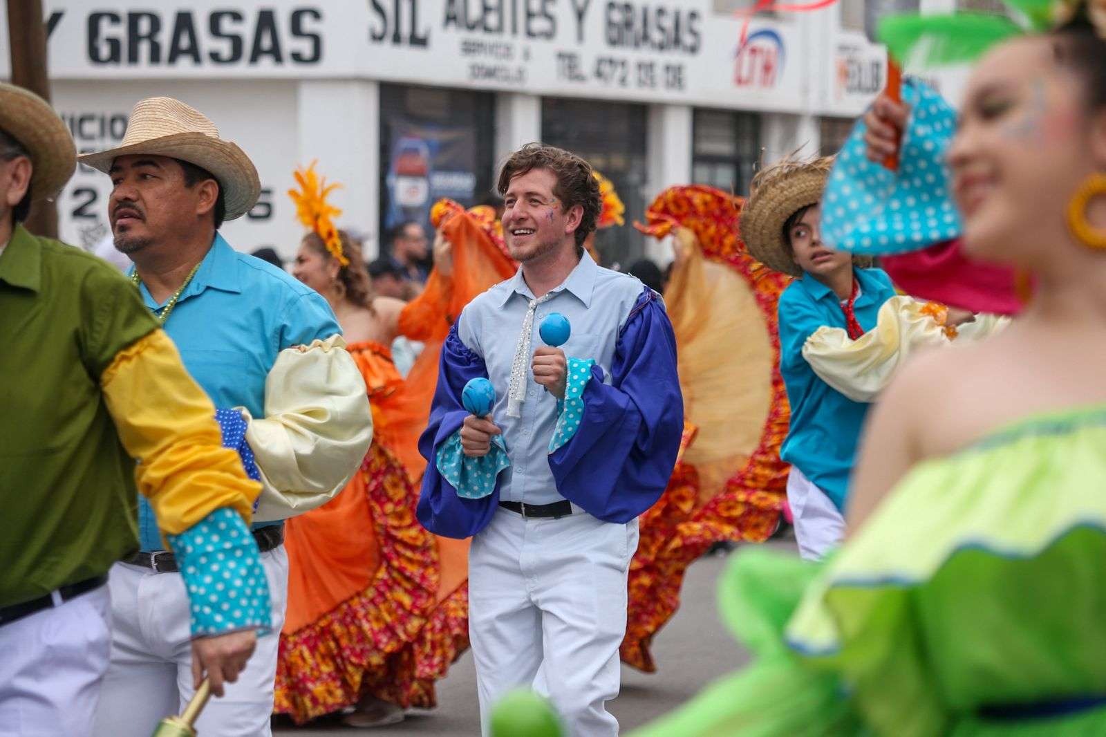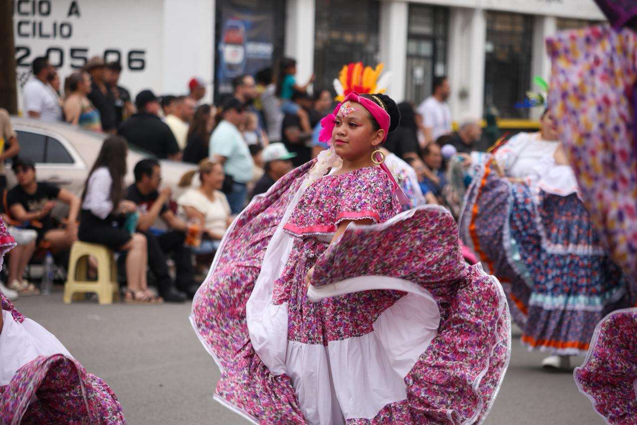El desfile inició con la participación de la Dirección de Seguridad Pública Municipal y avanzó entre música, danza, coloridos vestuarios y muestras de talento local y nacional, destacando la presencia de bandas de guerra, ballets folklóricos, instituciones educativas y agrupaciones artísticas.