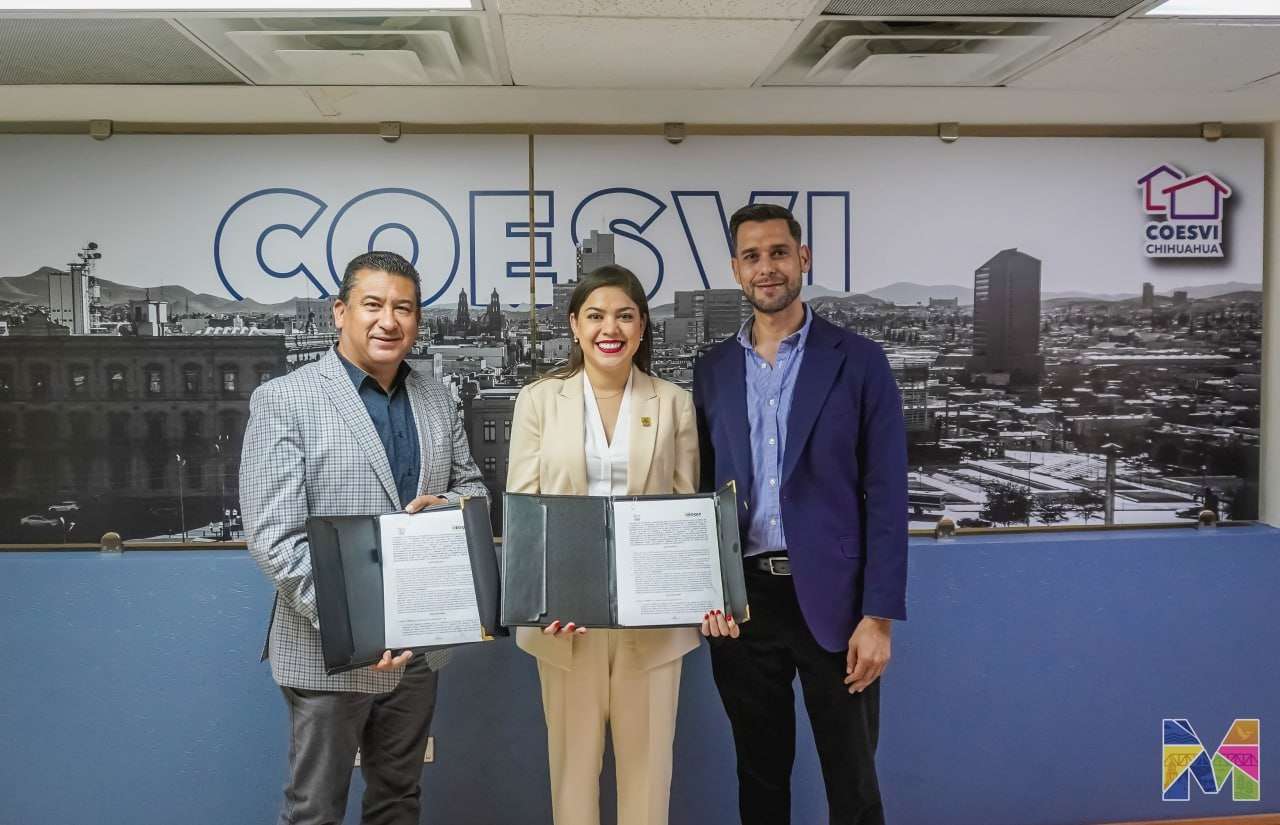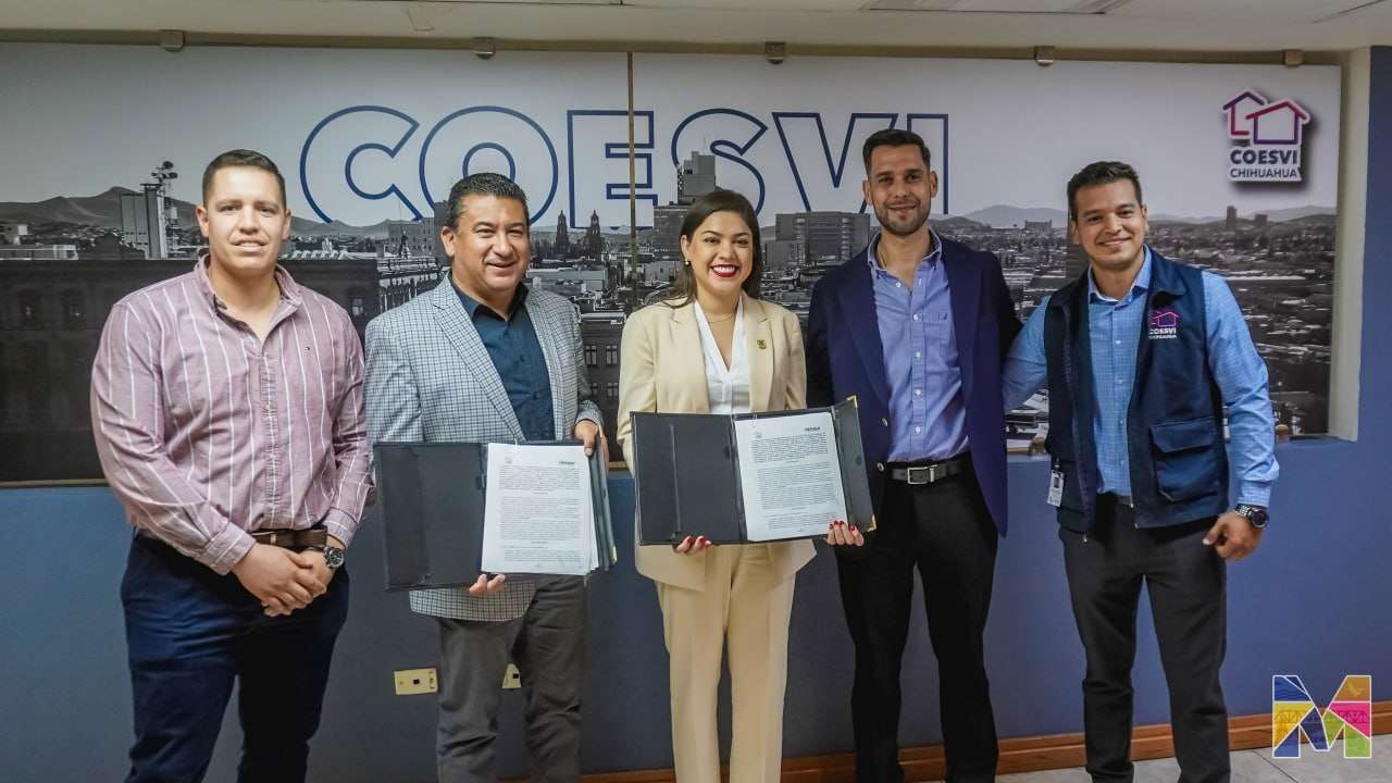 La alcaldesa acudió a la capital del estado para firmar este convenio, del cual José Antonio Chávez, director general de COESVI, informó que empataron el recurso municipal para beneficiar a más familias, destacando que: “Hemos recibido la instrucción directamente de la Gobernadora Maru Campos que no dejemos de contribuir en el mejoramiento de las viviendas; una organización muy bien planteada por parte del Proyecto de Meoqui a través de la alcaldesa Miriam Soto y eso nos da la confianza de que los recursos se están aplicando en las necesidades más sentidas de la población, tenemos otros proyectos que estuvimos platicando y sin duda la estaremos apoyando para que se concluyan con éxito".