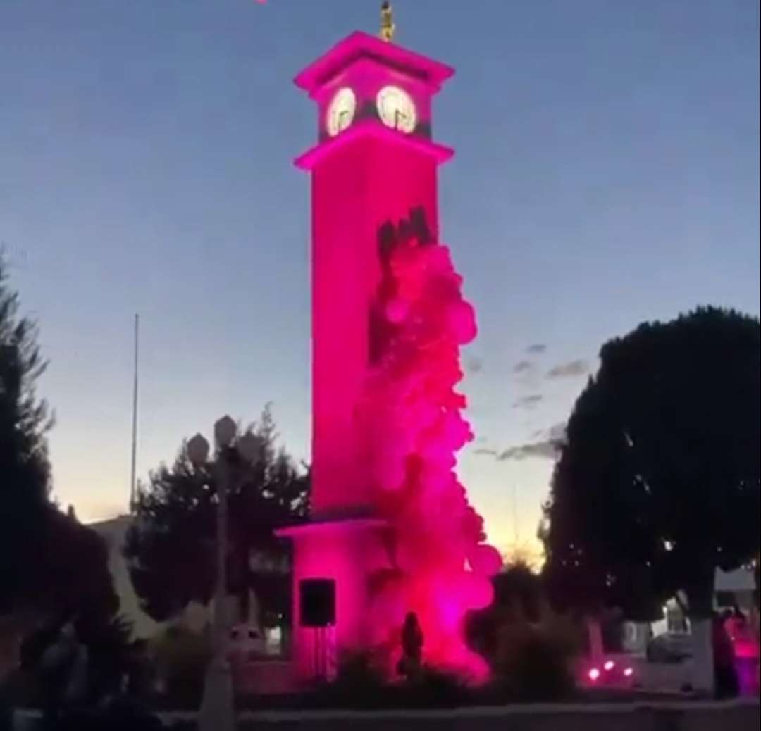 Iluminan reloj de rosa para conmemorar la lucha contra el cáncer