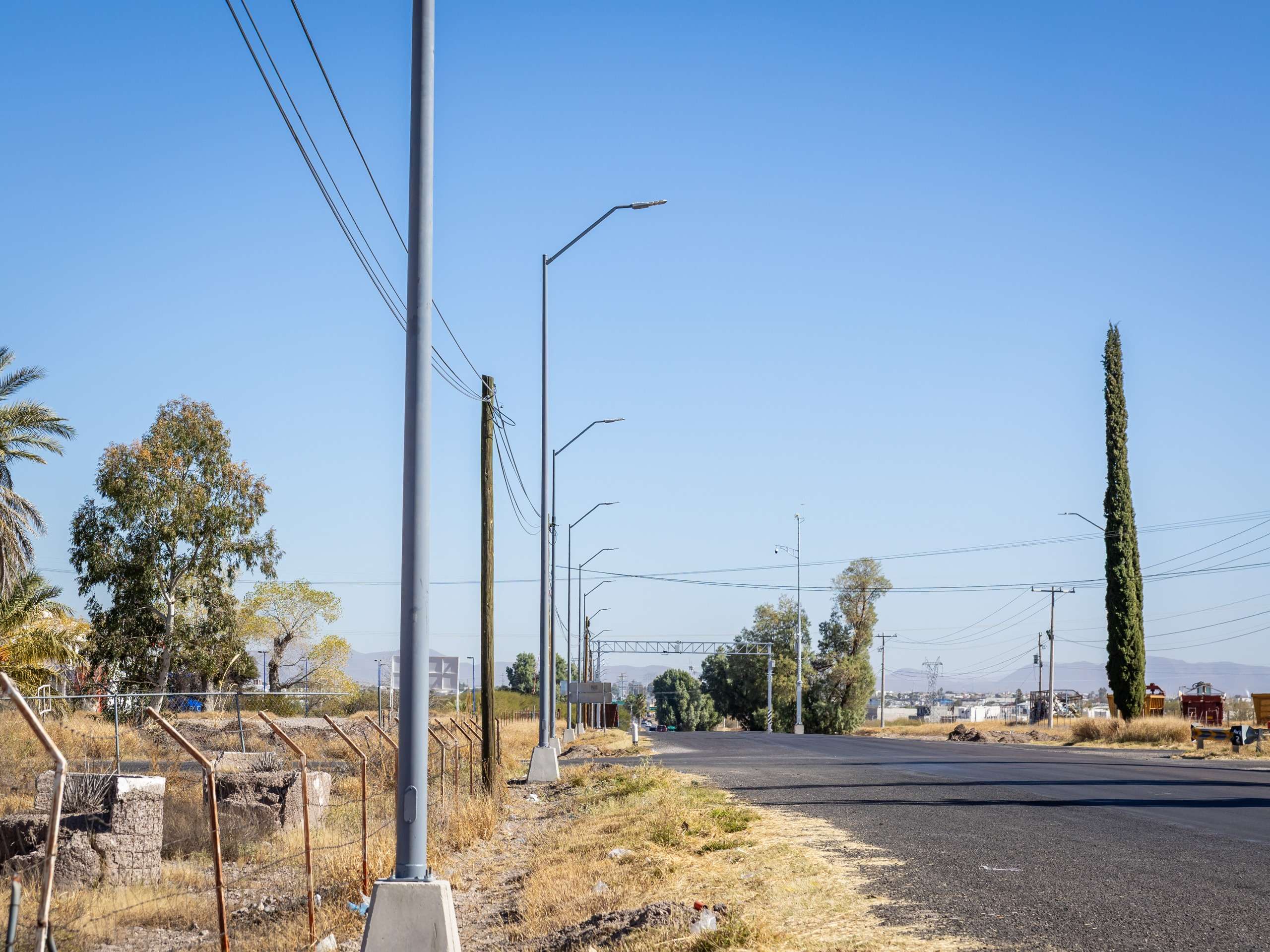 Delicias, Chih. - El Gobierno Municipal de Delicias registra avances importantes en los trabajos de instalación de nuevas luminarias en la carretera que conduce de Delicias a la presa Francisco I. Madero, una vialidad muy transitada y considerada estratégica para la movilidad y seguridad de la población.