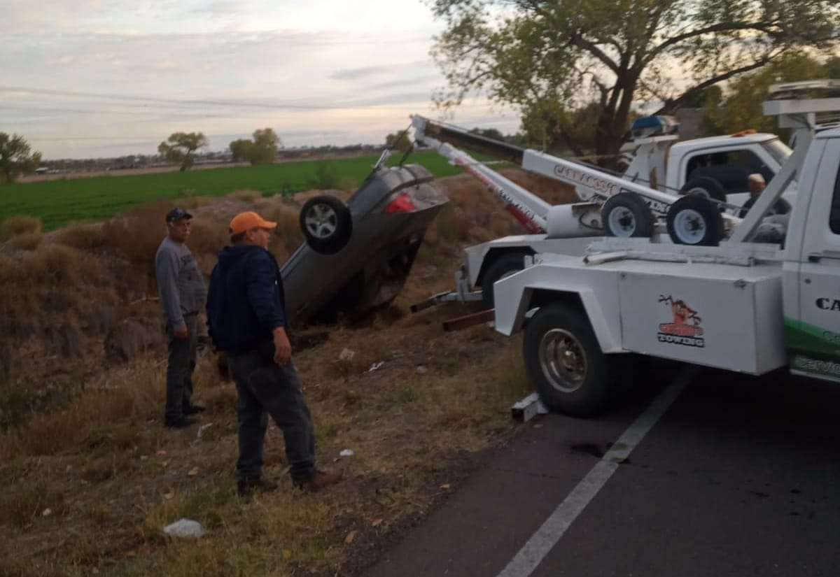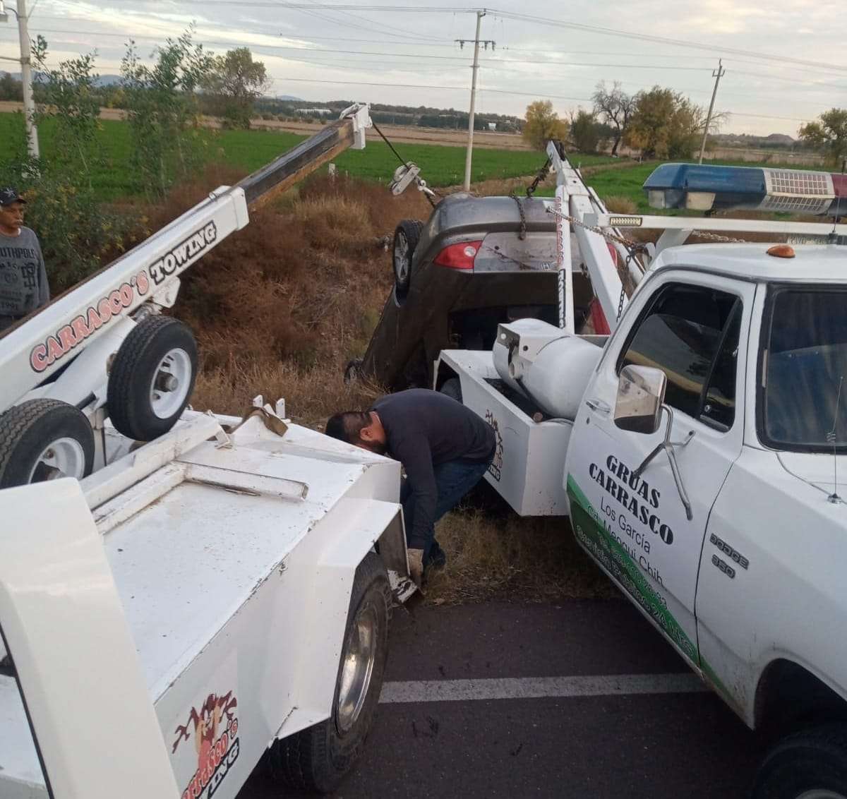 La conductora confirmó que iban en el auto para llegar a una empresa maquiladora, cuando se le reventó un neumático, perdió el control, salió del camino hasta precipitarse en el canal y quedar con el toldo para abajo.