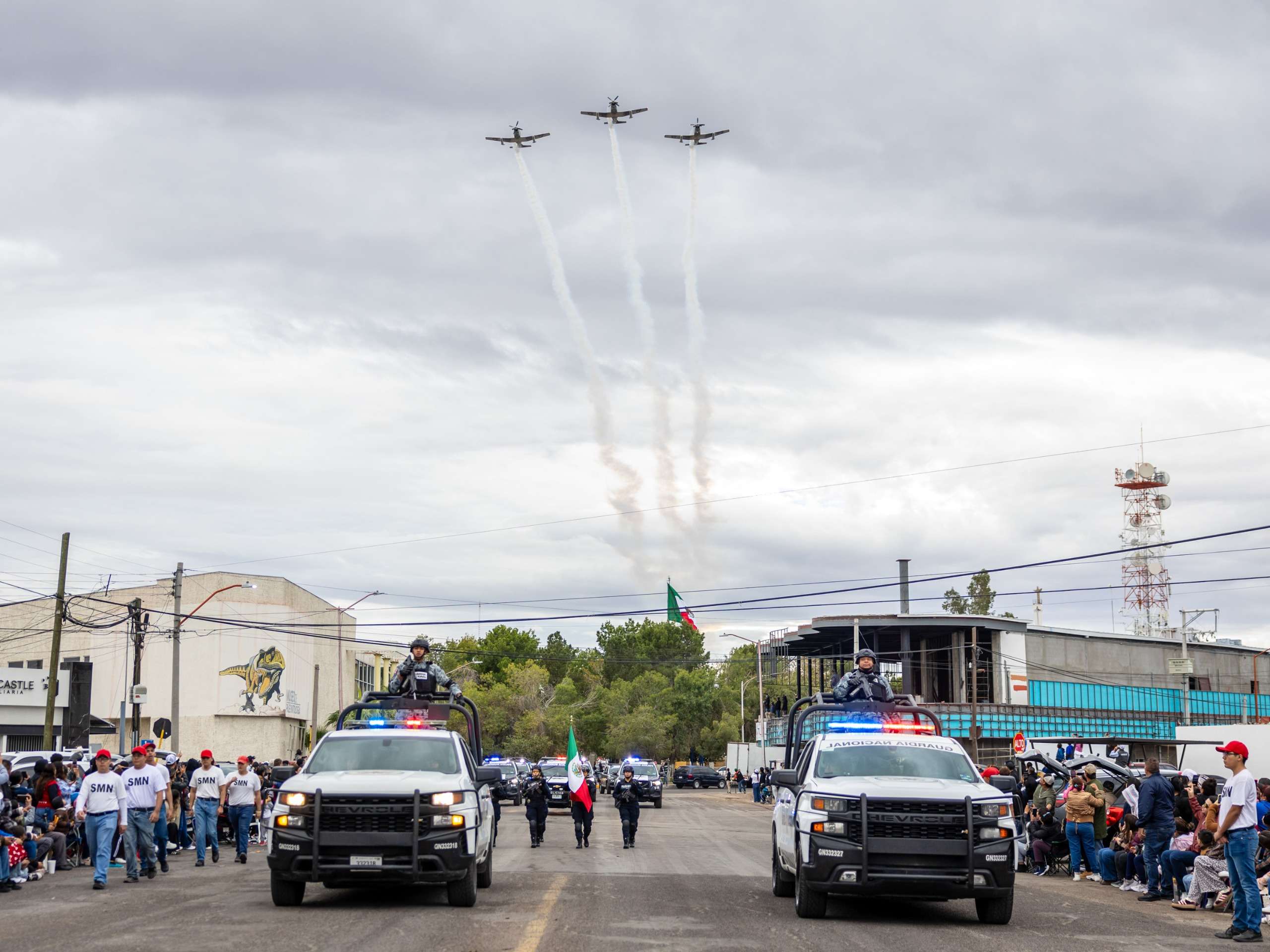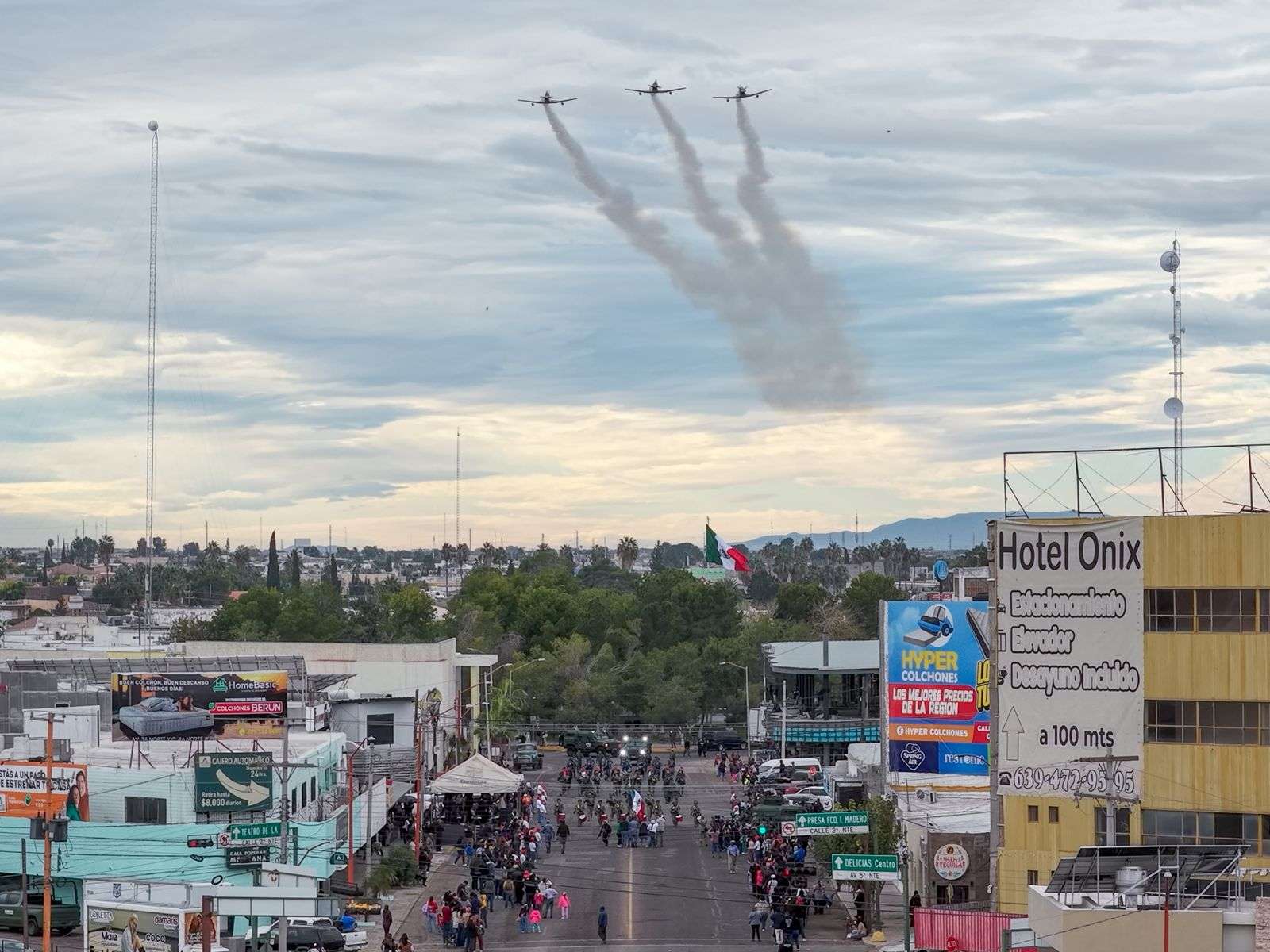 Delicias.- Miles de familias se dieron cita desde temprana hora para disfrutar el desfile del 115 aniversario de la Revolución Mexicana, un evento que llenó de color y tradición las principales calles de la ciudad y que fue encabezado por el presidente Jesús Valenciano García. El espectáculo aéreo cautivó a los asistentes gracias al sobrevuelo de tres aviones de combate de la Fuerza Aérea Mexicana, uno de los momentos más esperados por el público.