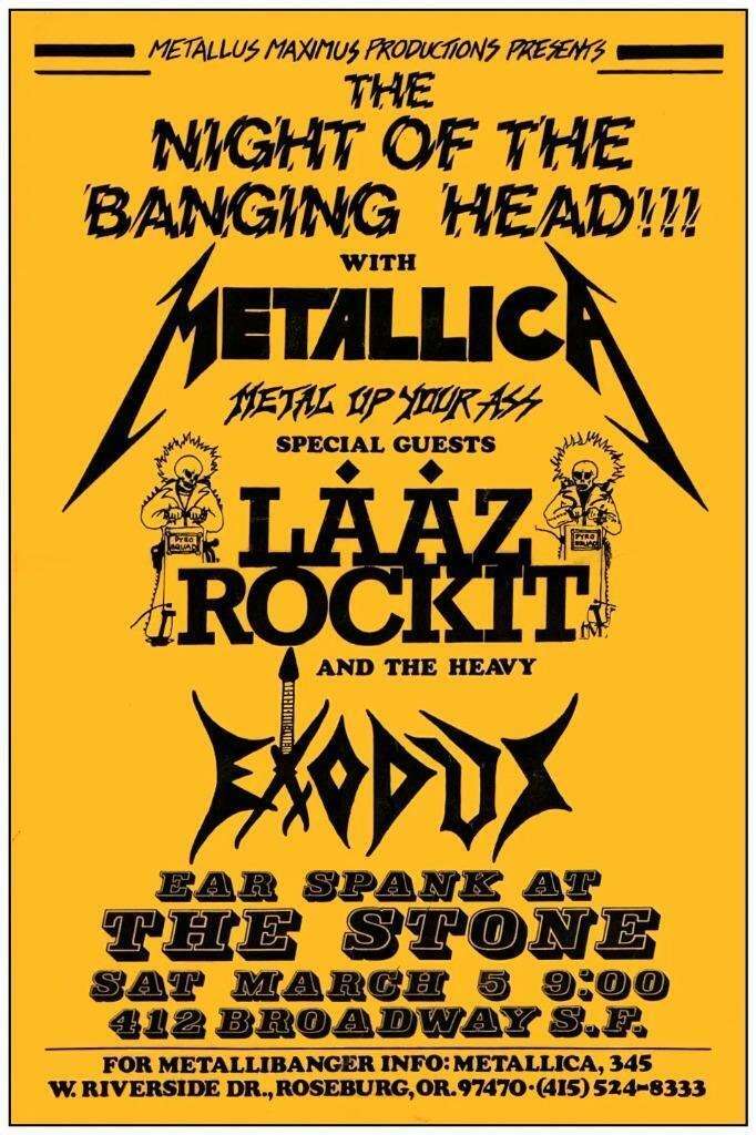 Semanas después, Brian Slagel, quién había publicado el compilado Metal Massacre 1982 (a través de su recién nacida casa disquera Metal Blade Records), decidió organizar un concierto en San Francisco. La banda Cirith Ungol, quién estaba prevista para tocar en el evento, canceló de último momento, por lo que Metallica fue invitado a tocar junto a Bitch y Hans Naughty, el 18 de septiembre de 1982 en un pequeño club llamado The Stone. A pesar de la premura y de las 6 horas de viaje que se hacen de Los Ángeles a San Francisco, decidieron ir a tocar. Nunca se imaginaron la reacción del público al salir al escenario.