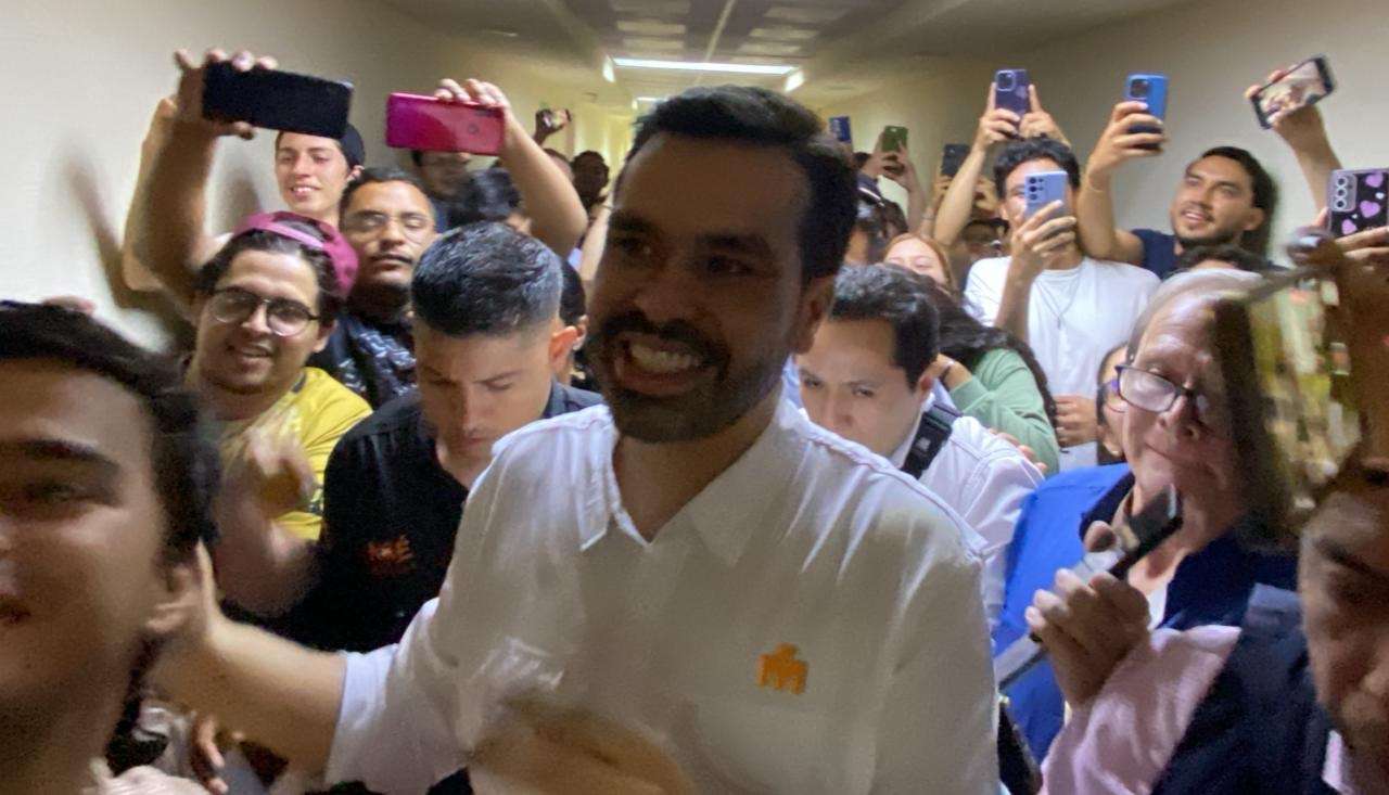 "Le mando saludos a la gobernadora que quiere golpear a nuestro movimiento, le mando saludos a la gobernadora", se limitó a señalar Maynez.