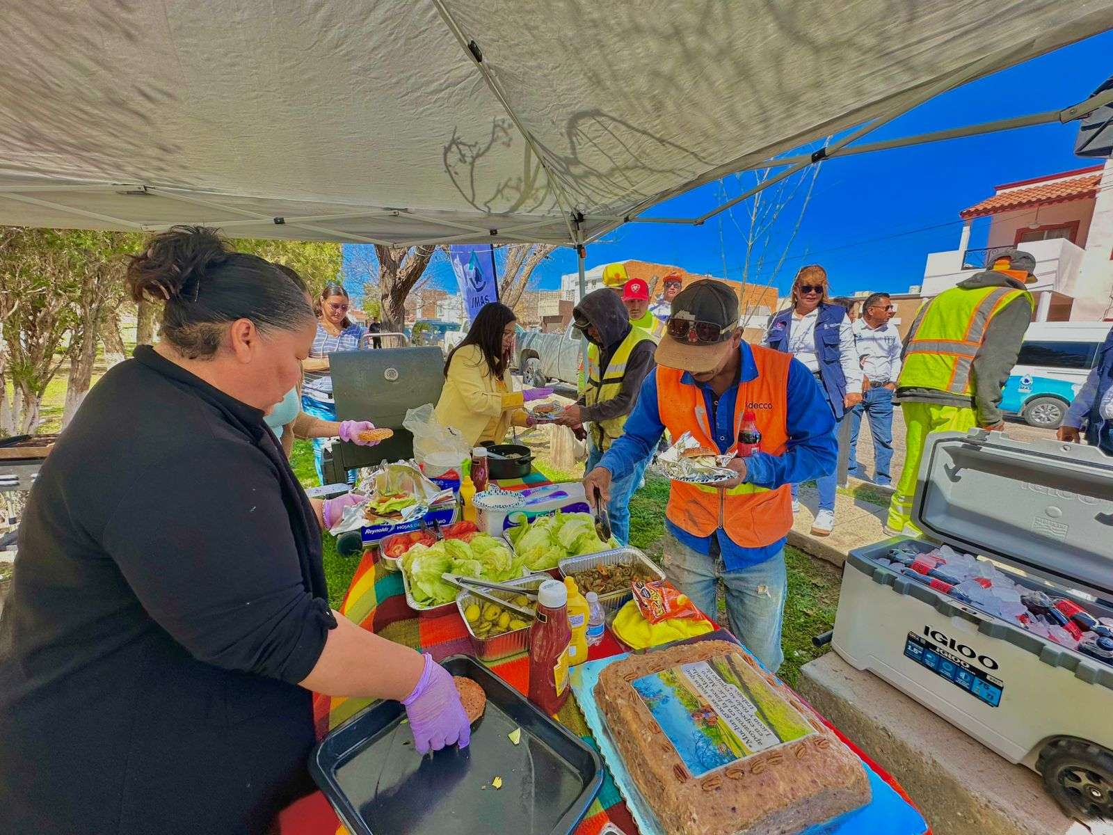 Juárez, Chih.– Vecinos del fraccionamiento Jardines del Seminario ofrecieron una hamburguesada a las cuadrillas de la Junta Municipal de Agua y Saneamiento (JMAS).