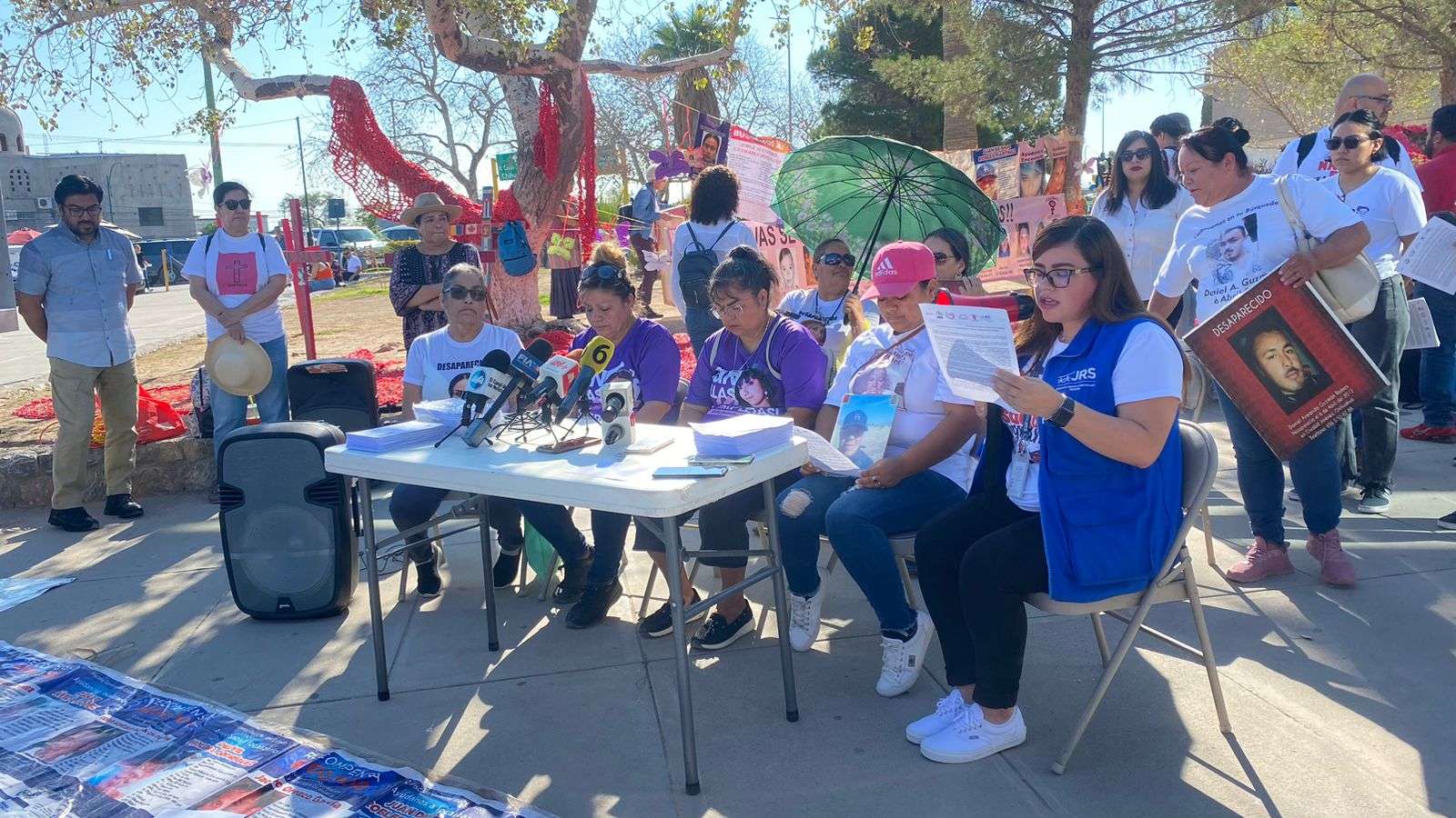 "Reiteramos nuestro compromiso con cada una de las denuncias, ya que la mayoría de quienes las pusieron se encuentra fuera del país. Reiteramos nuestro compromiso con cada una de las víctimas de desaparición, les acompañamos en este caminar y le seguiremos exigiendo la autoridad búsqueda, verdad y justicia", señala el documento leído.