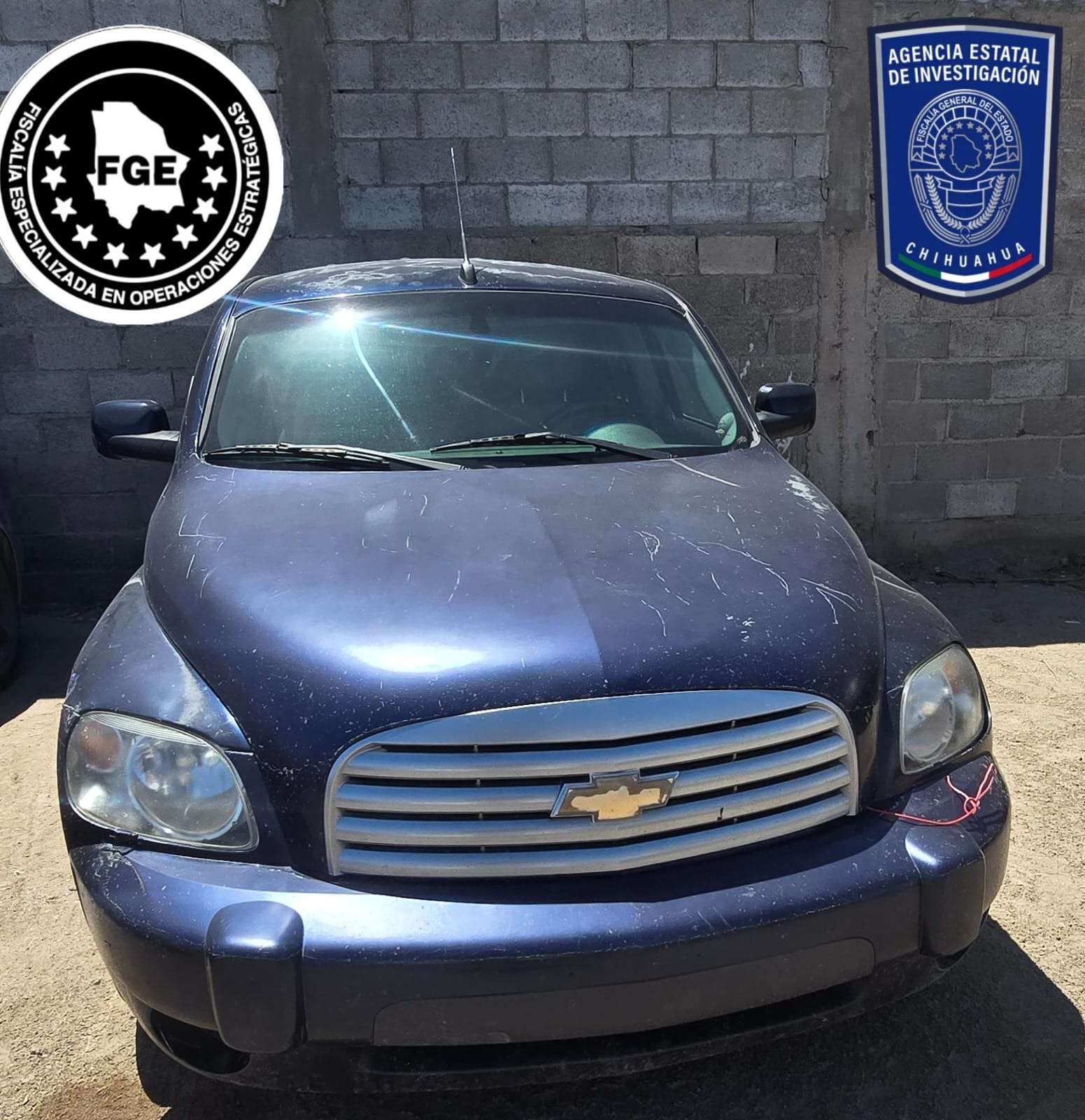 •    Una camioneta de la marca Chevrolet, línea HHR, color azul.