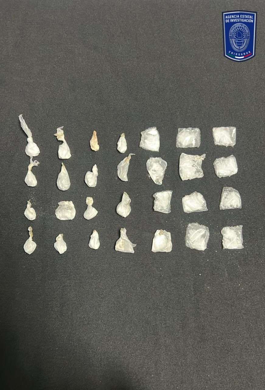 Un total de 28 envoltorios de plástico transparente, que en su interior contiene cada uno de ellos, una sustancia blanca y granulada con las características propias de la metanfetamina conocida como cristal, con un peso de 34 gramos.