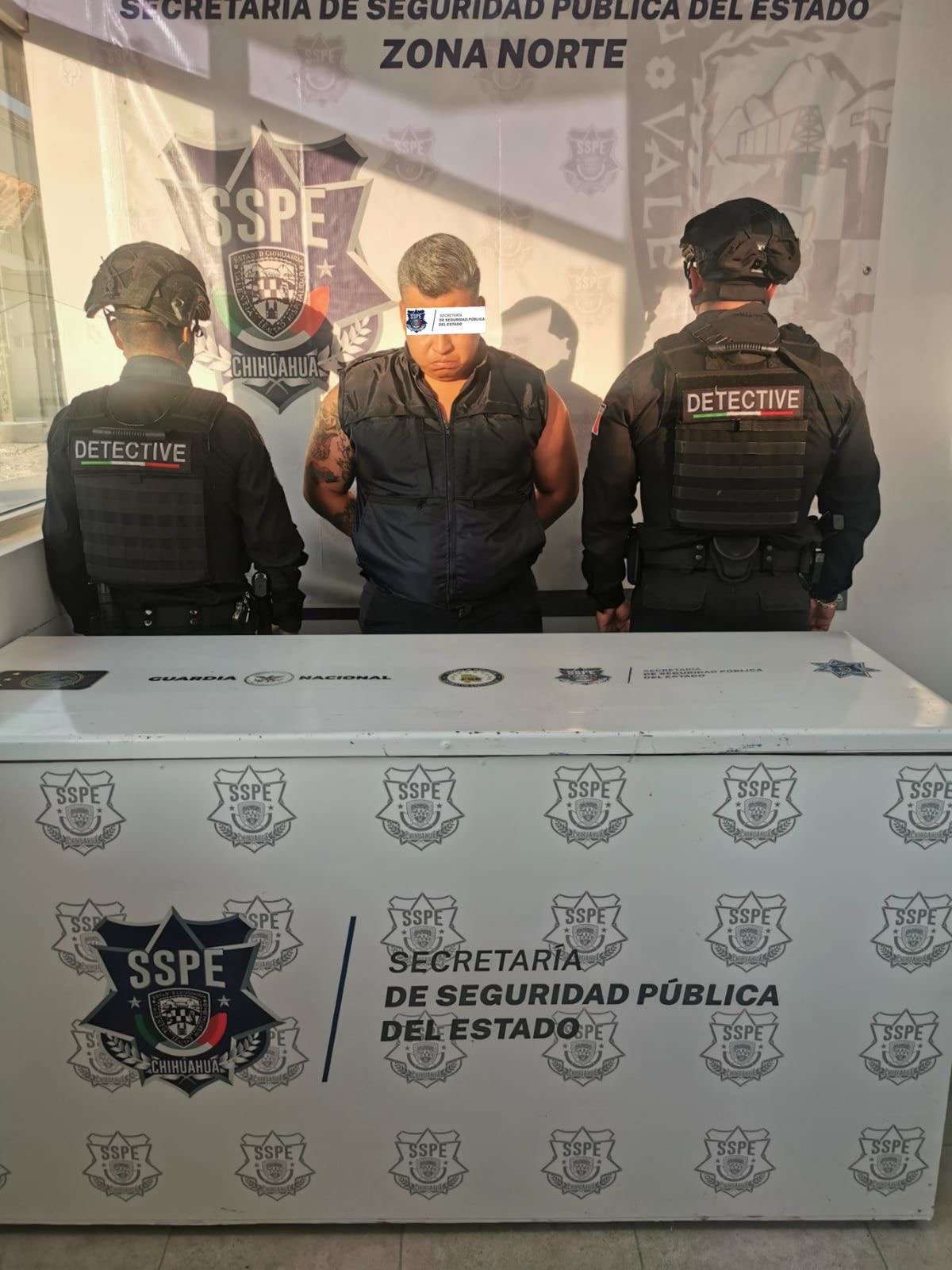 Ciudad Juárez.- La Secretaría de Seguridad Pública del Estado (SSPE), a través del Grupo Especial de Detectives, detuvo en Ciudad Juárez, a un sujeto de 44 años de edad identificado como Hugo L. T., por la presunta comisión del delito de abuso sexual, asimismo, el presunto responsable, forma parte del personal operativo de la Coordinación General de Seguridad Vial.
