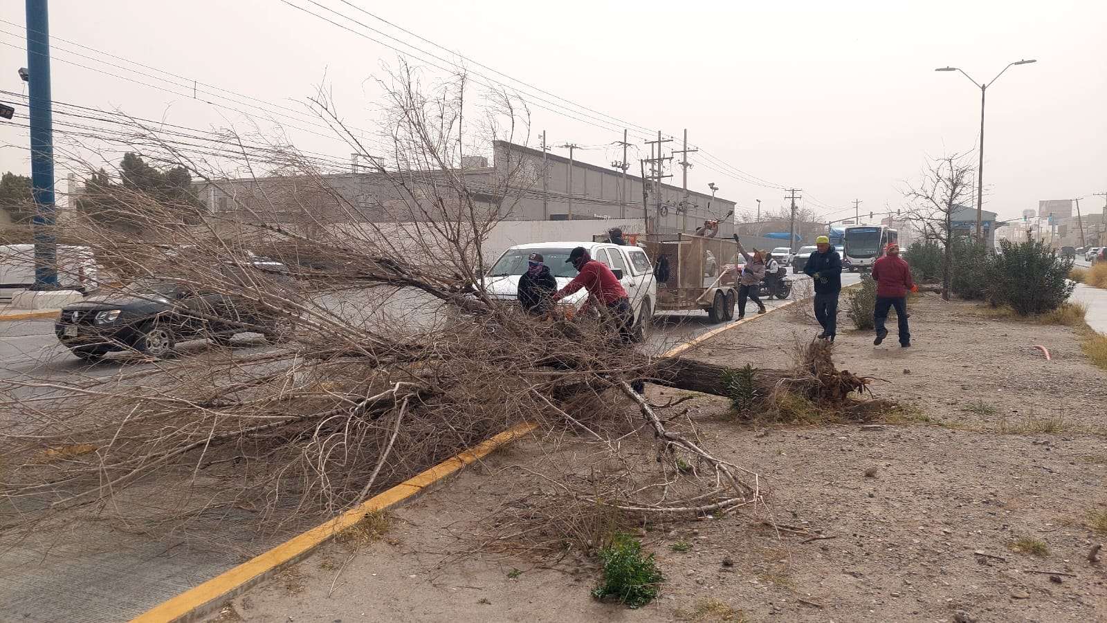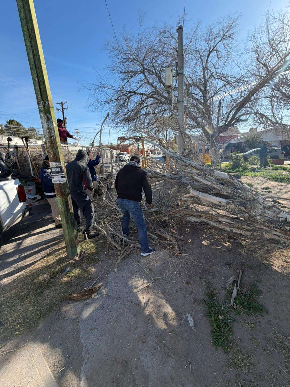 Ciudad Juárez.- La Dirección de Parques y Jardines atendió alrededor de 60 reportes ciudadanos derivados de los fuertes vientos que se registraron ayer, los cuales provocaron la caída de ramas y árboles, así como afectaciones en áreas verdes en distintos sectores de la ciudad.