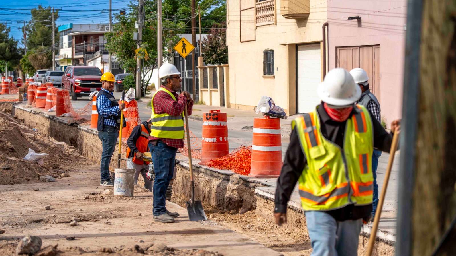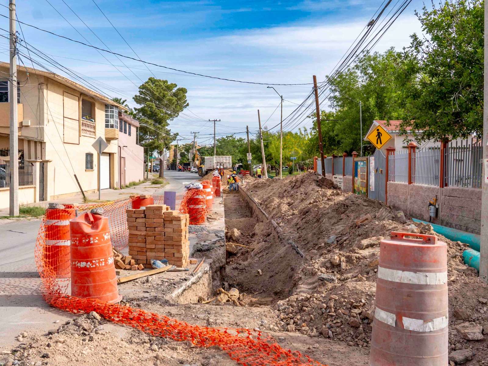 Ciudad Juárez.- La Junta de Agua y Saneamiento de Ciudad Juárez informa que continúan los trabajos de introducción de la línea de agua tratada, así como la instalación de tubería nueva de drenaje en la calle Montebello, con el objetivo de restablecer la circulación vehicular en el menor tiempo posible y facilitar el acceso a padres de familia de las escuelas ubicadas en la zona.