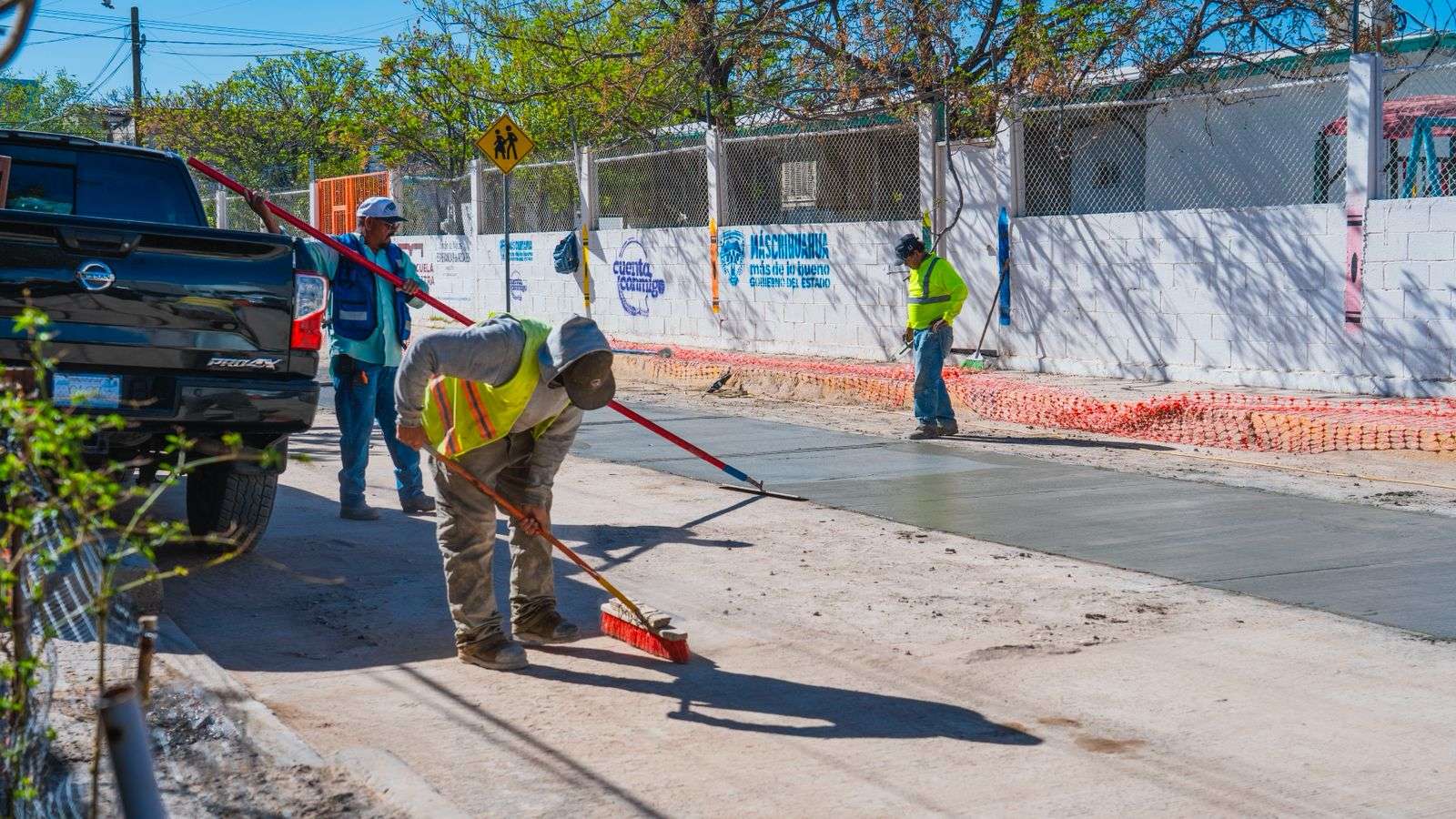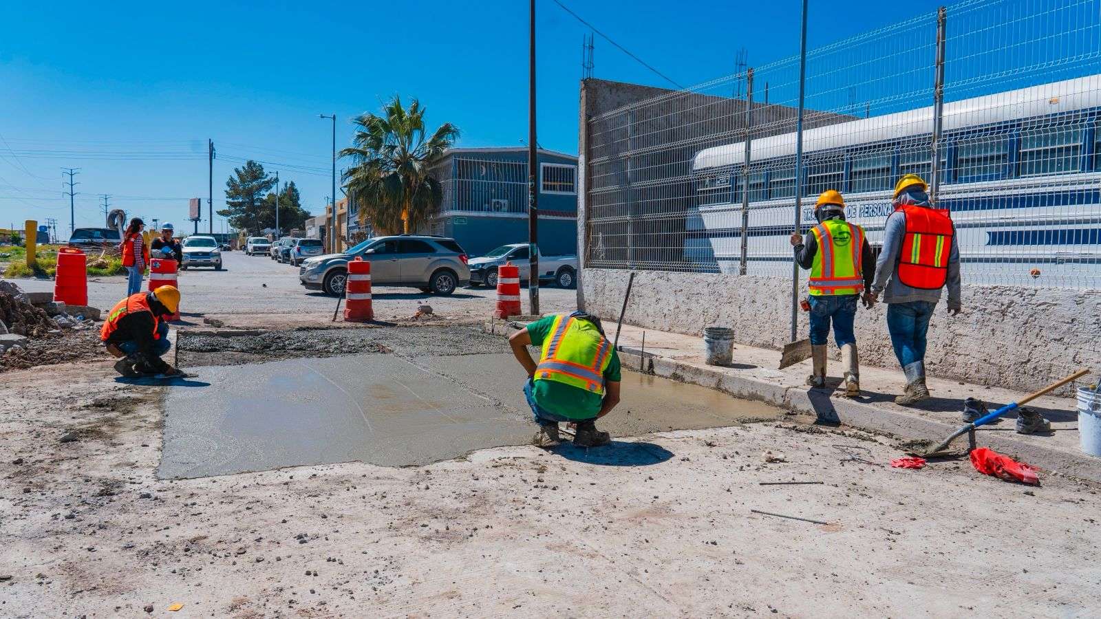 El ingeniero Alejandro Oruña, supervisor del Departamento de Bacheo de la JMAS, informó que este viernes se realizaron trabajos de colado de concreto para reparar zanjas y áreas afectadas por las intervenciones en la infraestructura hidráulica.