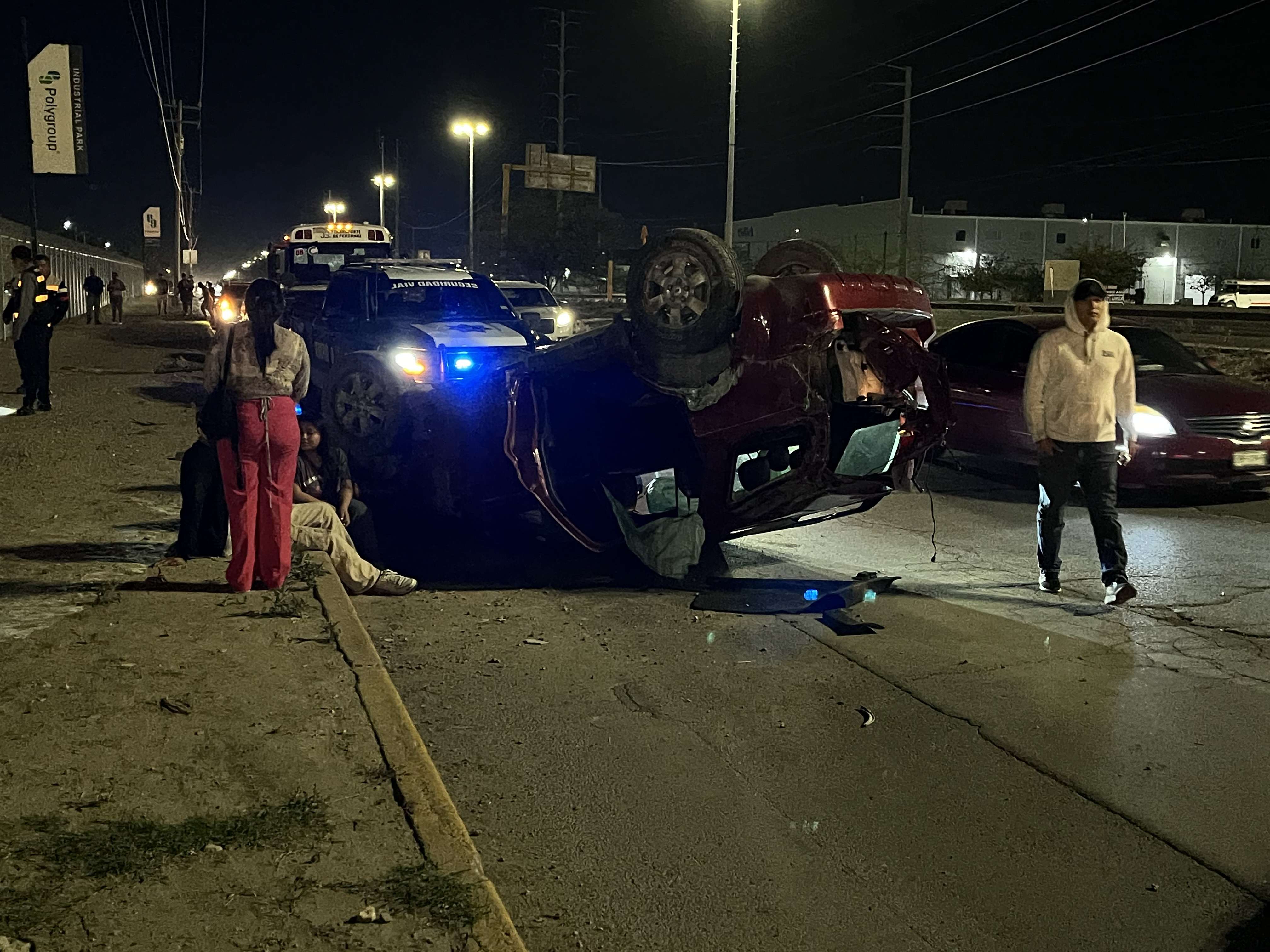 El fuerte golpe provocó que el conductor de la Ford Escape perdiera el control, se subiera a la banqueta, chocara contra la reja de una empresa maquiladora y finalmente terminara volcado.