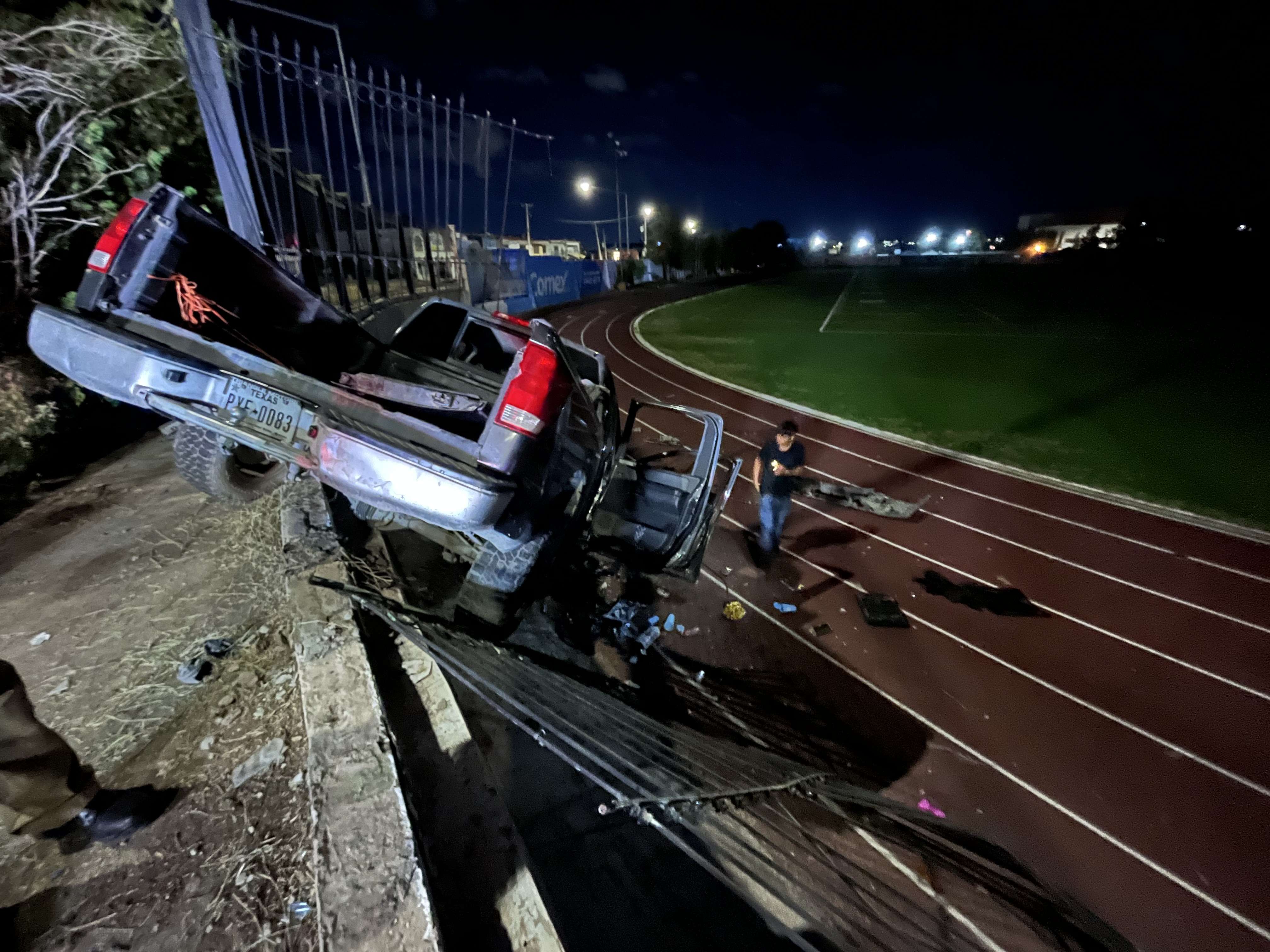 Ciudad Juárez.- Dos jóvenes mujeres resultaron lesionadas luego de que la camioneta en la que viajaban se salió del camino y derribó parte de la reja del estadio 20 de Noviembre, tras perder el control el conductor presuntamente por conducir a exceso de velocidad y en posible estado de ebriedad.