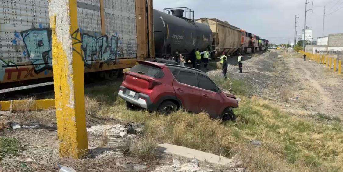 En el lugar la conductora que circulaba por la Ponciano Arriaga fue impactada por el tren cuando intentó ganarle el paso.