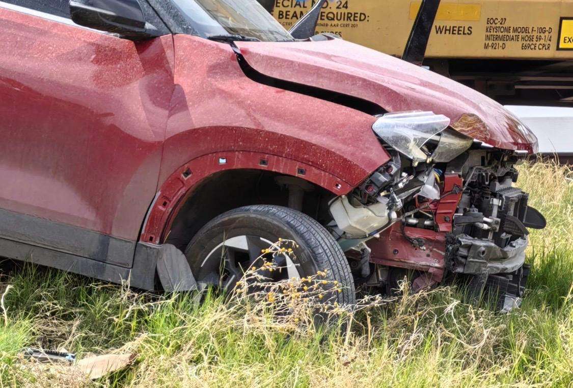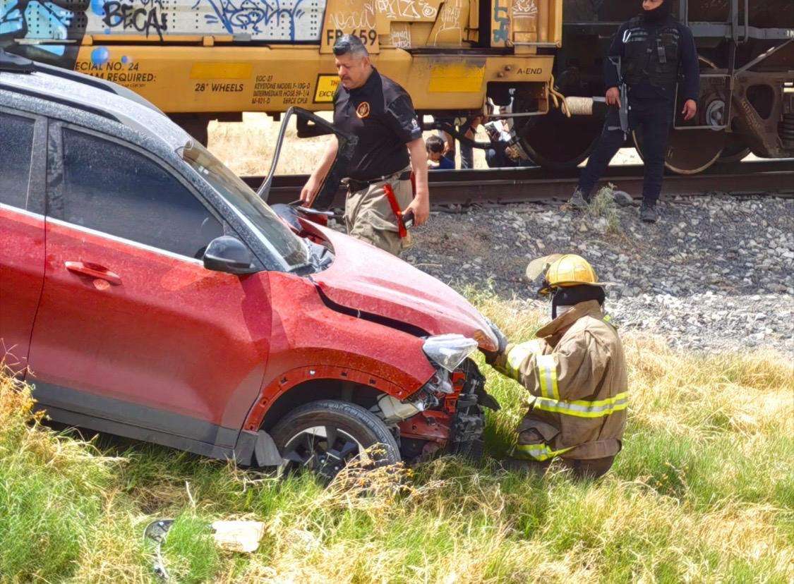 Ciudad Juárez.- La conductora de una camioneta Kia color guinda intentó ganarle al tren y su automóvil fue impactado por lo que resultó con lesiones leves.