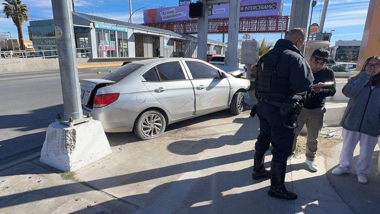 Ciudad Juárez.- Un accidente vehicular registrado en la intersección de las calles Triunfo y López dejó como saldo daños materiales, luego de que dos unidades que circulaban de poniente a oriente colisionaran la tarde de este domingo.