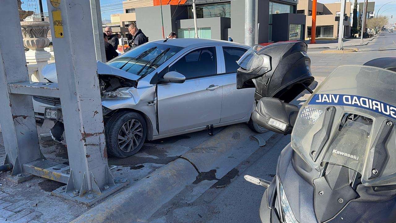 En la secuencia del impacto, el conductor del Chevrolet Tadeo golpeó por alcance a la Taos y, tras el choque, perdió el control de la unidad, proyectándose contra las estructuras de los semáforos ubicados en dicho cruce.