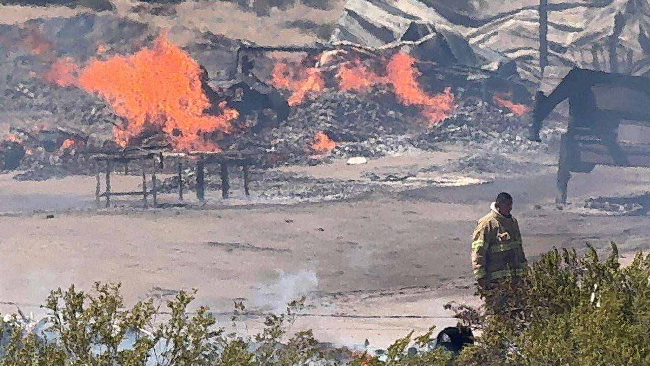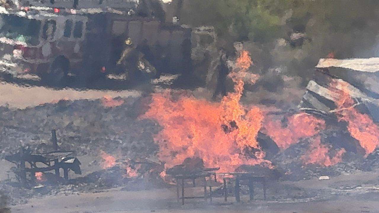Ciudad Juárez.- Un incendio de gran magnitud se registró en unas casas donde almacenaban tarimas en el poblado de San Isidro.