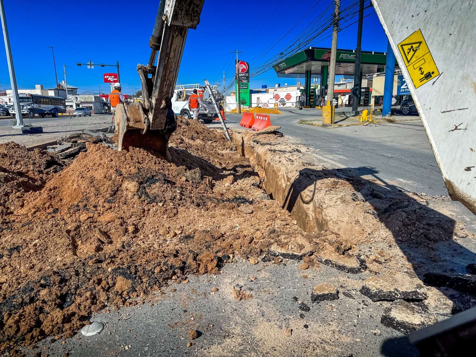 En otra acción, la JMAS atendió de manera inmediata un hundimiento expuesto en el cruce de las calles 20 de Noviembre y Bolivia, en la colonia El Barreal, donde se realiza la reposición de aproximadamente 12 metros de tubería, informó Bernabé Magdaleno, del departamento de Alcantarillado del Distrito 3.