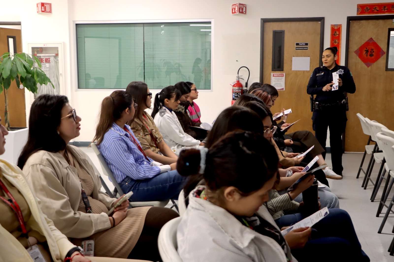 Ciudad Juárez.- La Secretaría de Seguridad Pública Municipal, a través de la Dirección Especializada en Violencia Familiar y de Género (DEVIFG), impartió la plática “Mujer Segura” a personal de la empresa Inventec PSG, con el objetivo de promover la prevención de la violencia y fortalecer la información sobre los mecanismos de apoyo y protección para las mujeres.