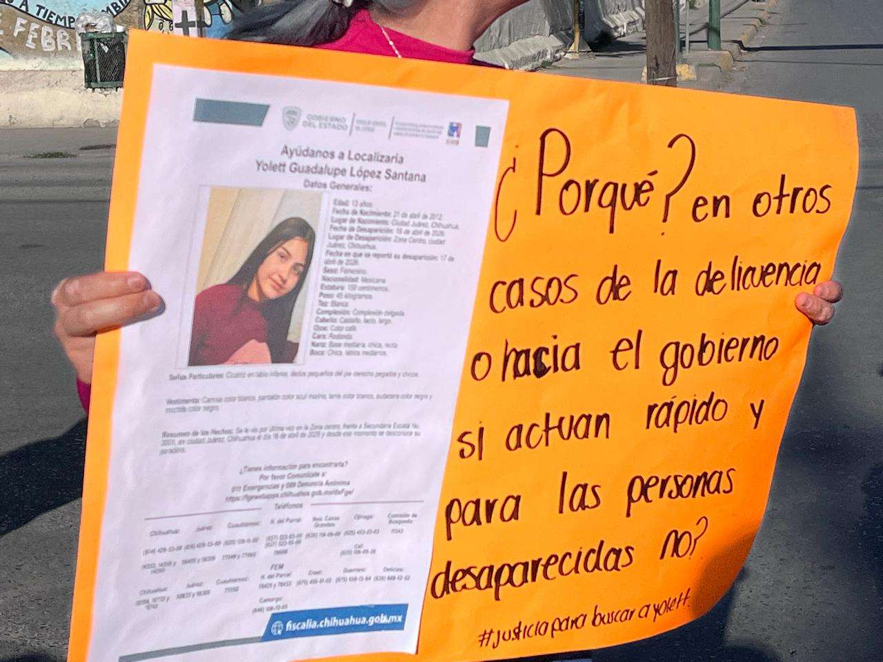Asimismo, exigieron acceso a los videos de cámaras de vigilancia de Juárez Vigilante instaladas en el sector, con el objetivo de conocer el trayecto de la menor tras salir del plantel y obtener pistas que ayuden a localizarla.
