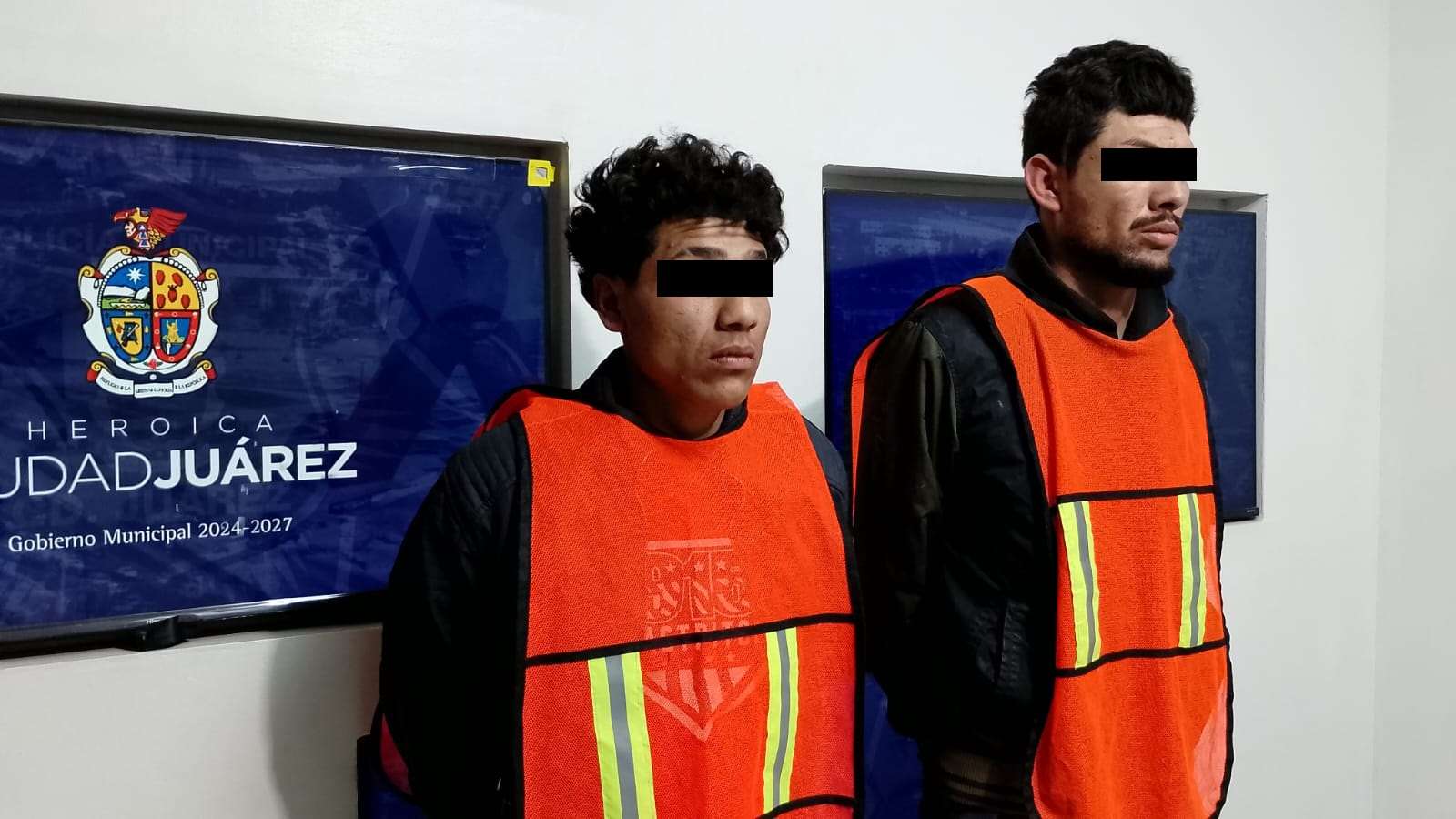 Ciudad Juárez.- Elementos de la Secretaría de Seguridad Pública Municipal, adscritos a la Estación de Policía del Distrito Poniente, arrestaron a Edgar Eduardo P. P., Jesús Alonso P. P. y un adolescente, por su presunta responsabilidad en la comisión del delito de robo a casa habitación.