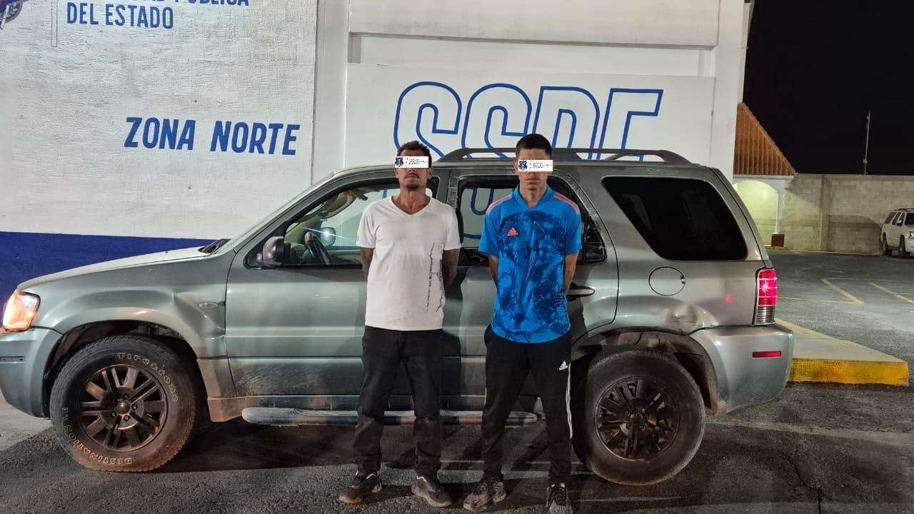 Ciudad Juárez.- Durante la tarde del pasado lunes en Ciudad Juárez, la Secretaría de Seguridad Pública del Estado, a través del Grupo Especial de Detectives, llevó a cabo la detención de dos sujetos identificados como Juan G. R. y Andrés Esteban H. S., quienes se encontraban en posesión de un vehículo presuntamente relacionado con un delito previo de homicidio doloso.