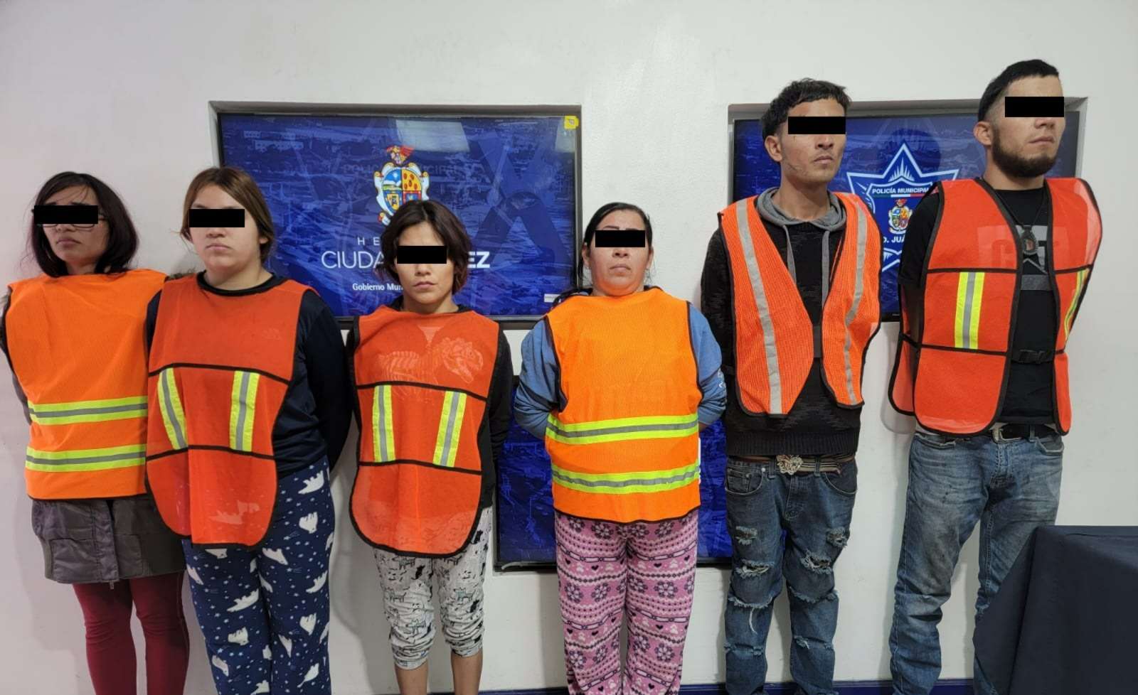 Ciudad Juárez -. Elementos de la Secretaría de Seguridad Pública Municipal, adscritos a la Estación de Policía del Distrito Oriente, lograron la detención de cuatro mujeres, dos hombres y un adolescente, por su presunta responsabilidad en el delito de secuestro, así como el rescate de seis niños y tres mujeres, durante una oportuna intervención policial.