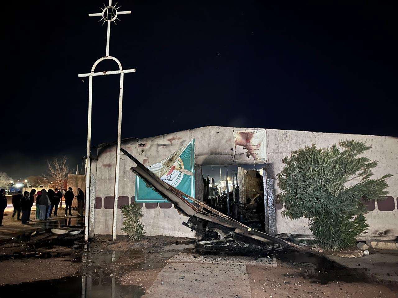 Ciudad Juárez.– Reducida a cenizas quedó gran parte de la iglesia San Pío I, ubicada en el fraccionamiento Parajes de San José, tras registrarse un incendio durante la madrugada.