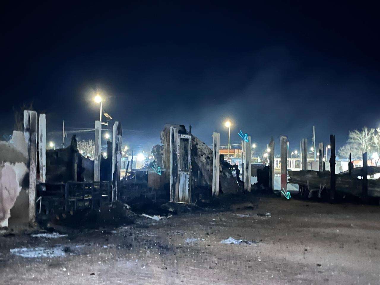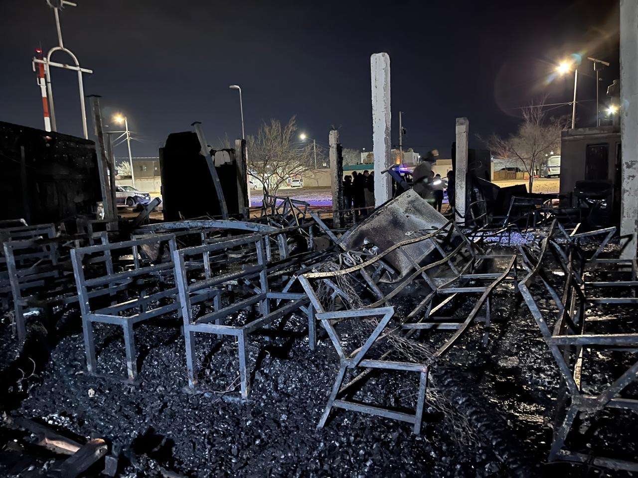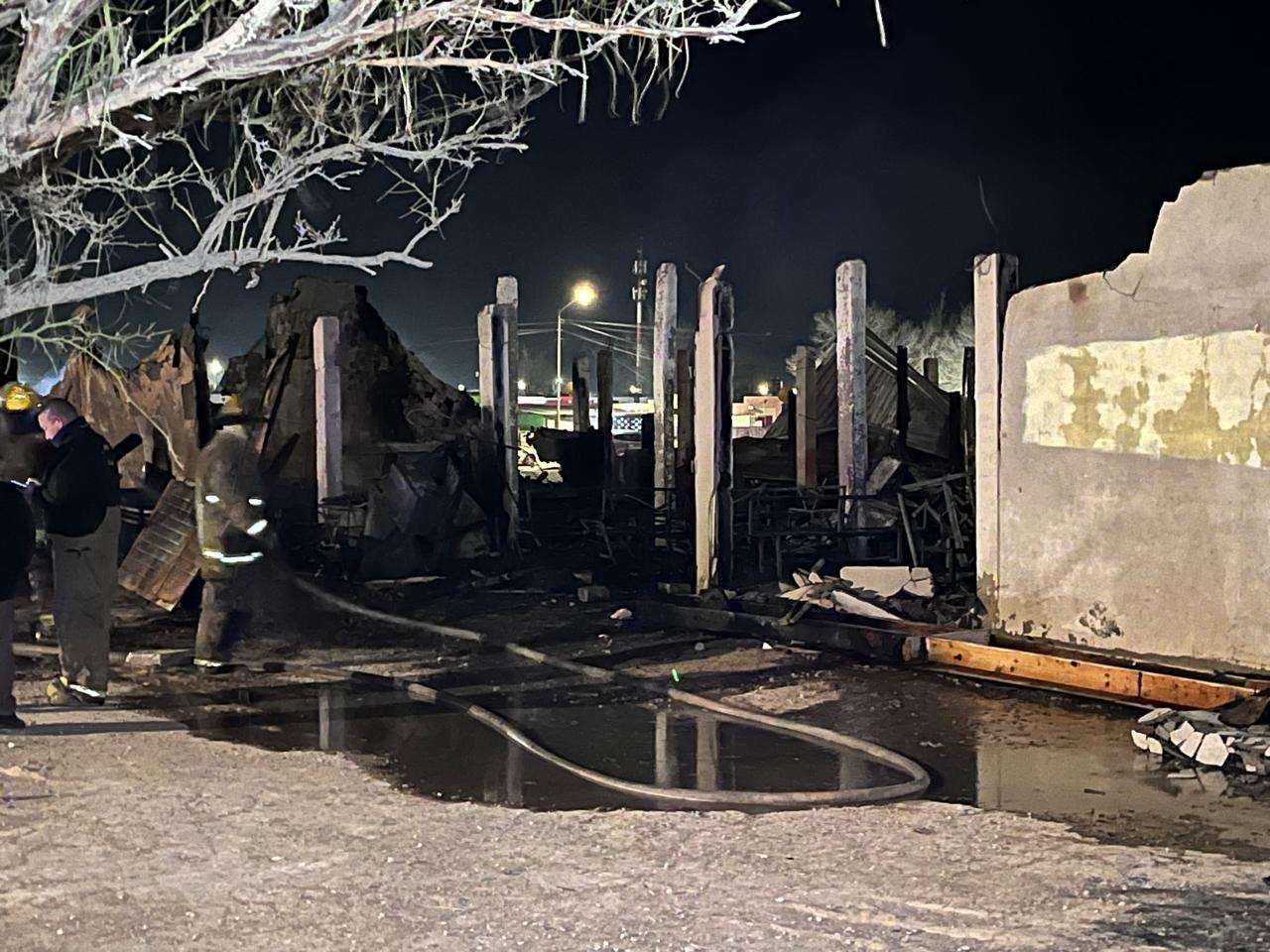 En el lugar se pudo observar estructura colapsada, mobiliario completamente calcinado y restos metálicos retorcidos entre los escombros, evidencia de la intensidad del fuego que consumió principalmente el área donde se encontraban varias sillas y un salón contiguo.