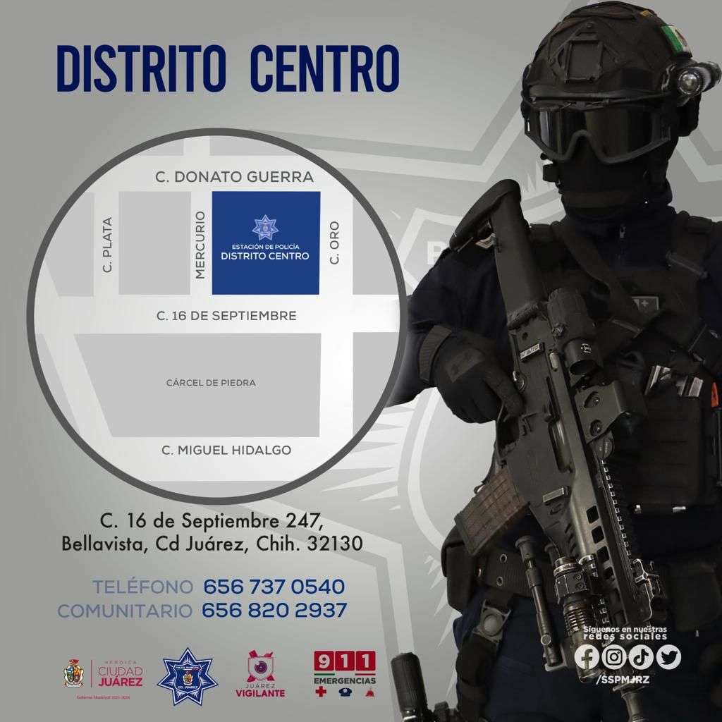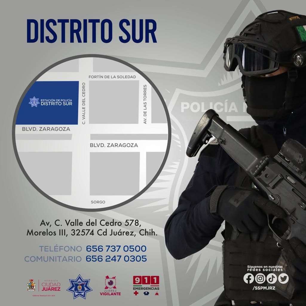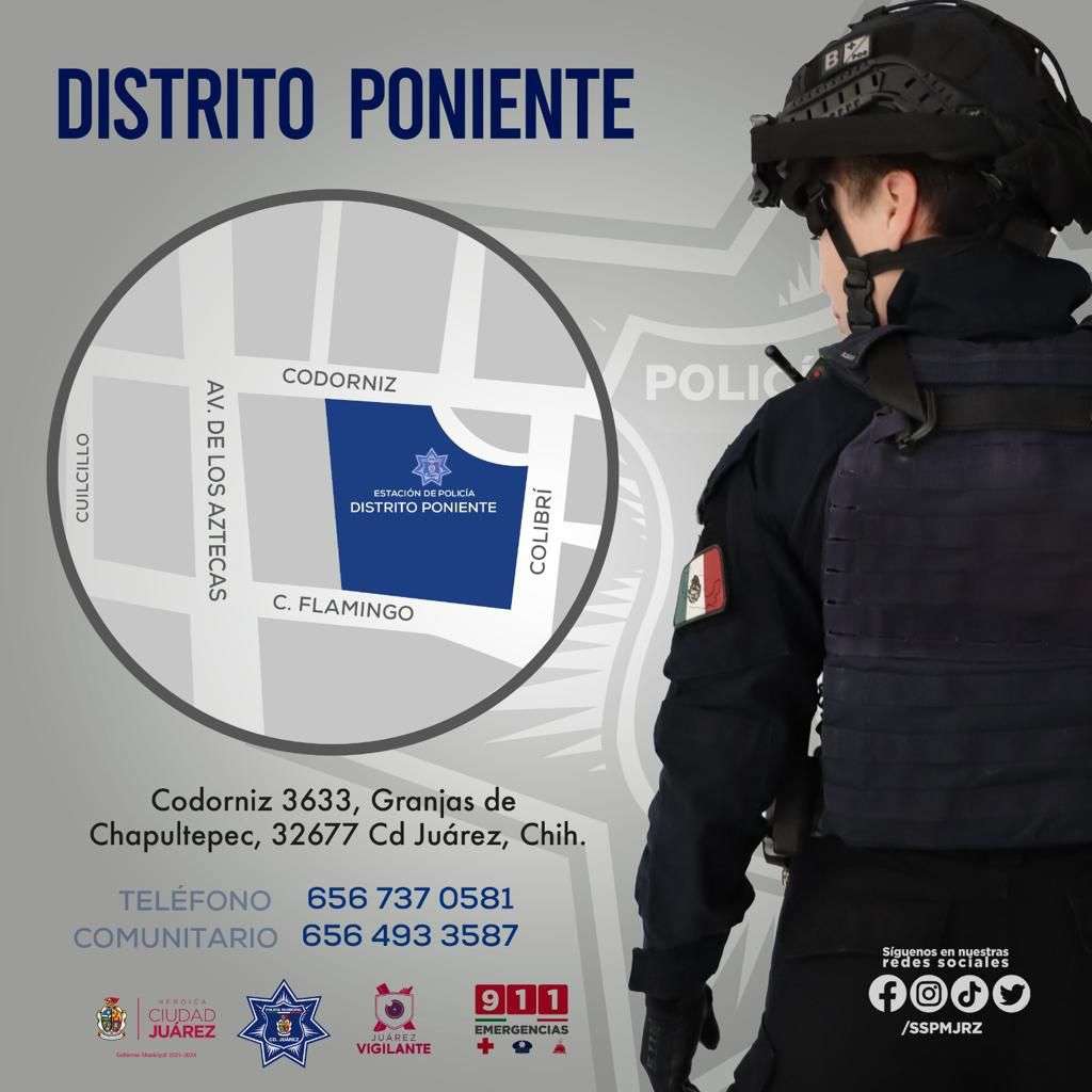 Otro distrito es el Poniente ubicado en la calle Codorniz y avenida de Los Aztecas con los números 756-737-05-81 y 656-493-35-87.