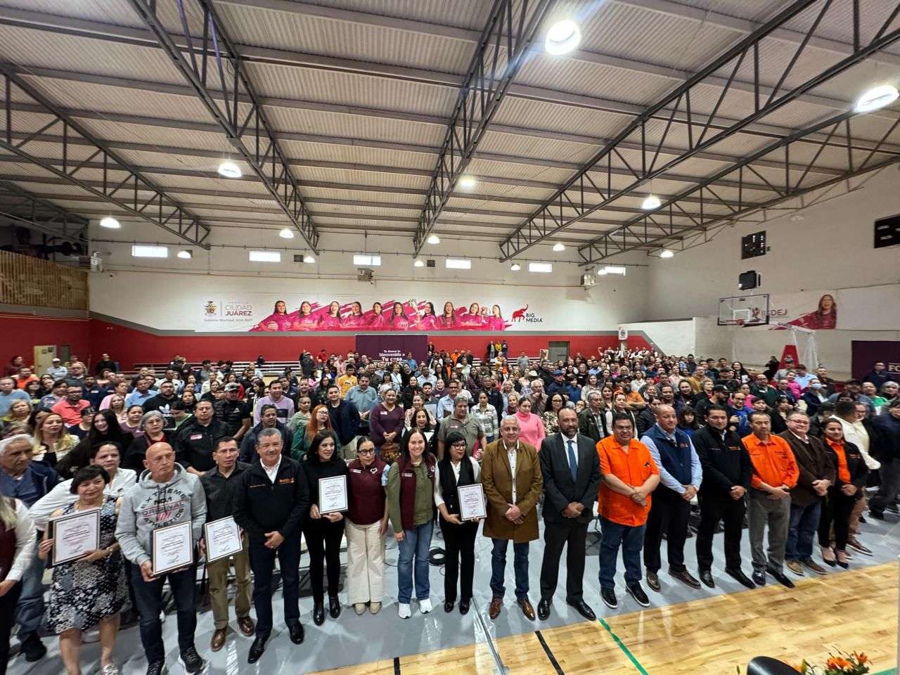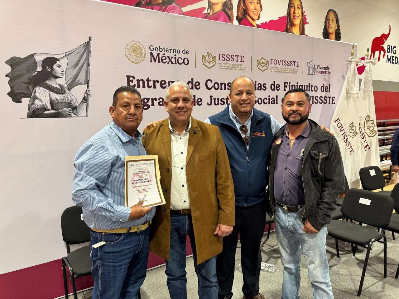 Juárez, Chih.- La Sección 8 del Sindicato Nacional de Trabajadores de la Educación (SNTE) y el Fondo de la Vivienda del Instituto de Seguridad y Servicios Sociales de los Trabajadores del Estado (FOVISSSTE) realizaron la entrega de 350 Constancias de Finiquito a agremiadas y agremiados a la organización sindical y la sociedad en general, esto como parte del Programa de Certeza Patrimonial del SNTE y el Programa de Justicia Social del Gobierno Federal.