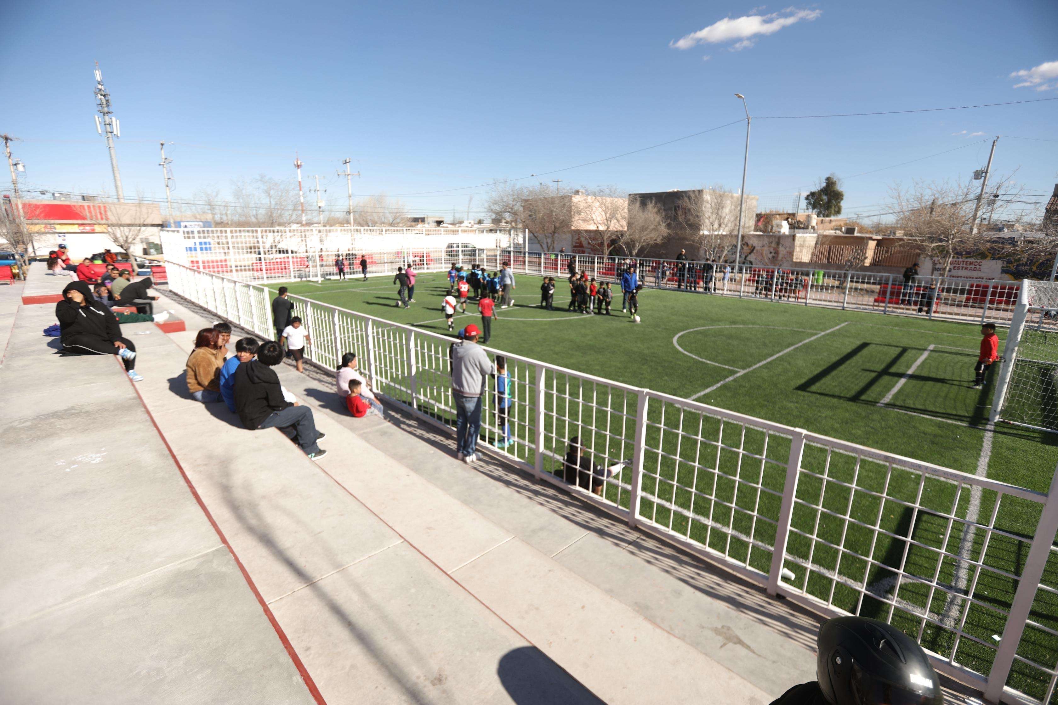 Por su parte, Daniel González García, titular de Obras Públicas informó que la obra consistió en la construcción de dos canchas de fútbol, colocación de mobiliario urbano y juegos, gravas decorativas, la fabricación de una cancha de concreto, además de reja perimetral en las canchas, con una inversión de 10,811,201 pesos.