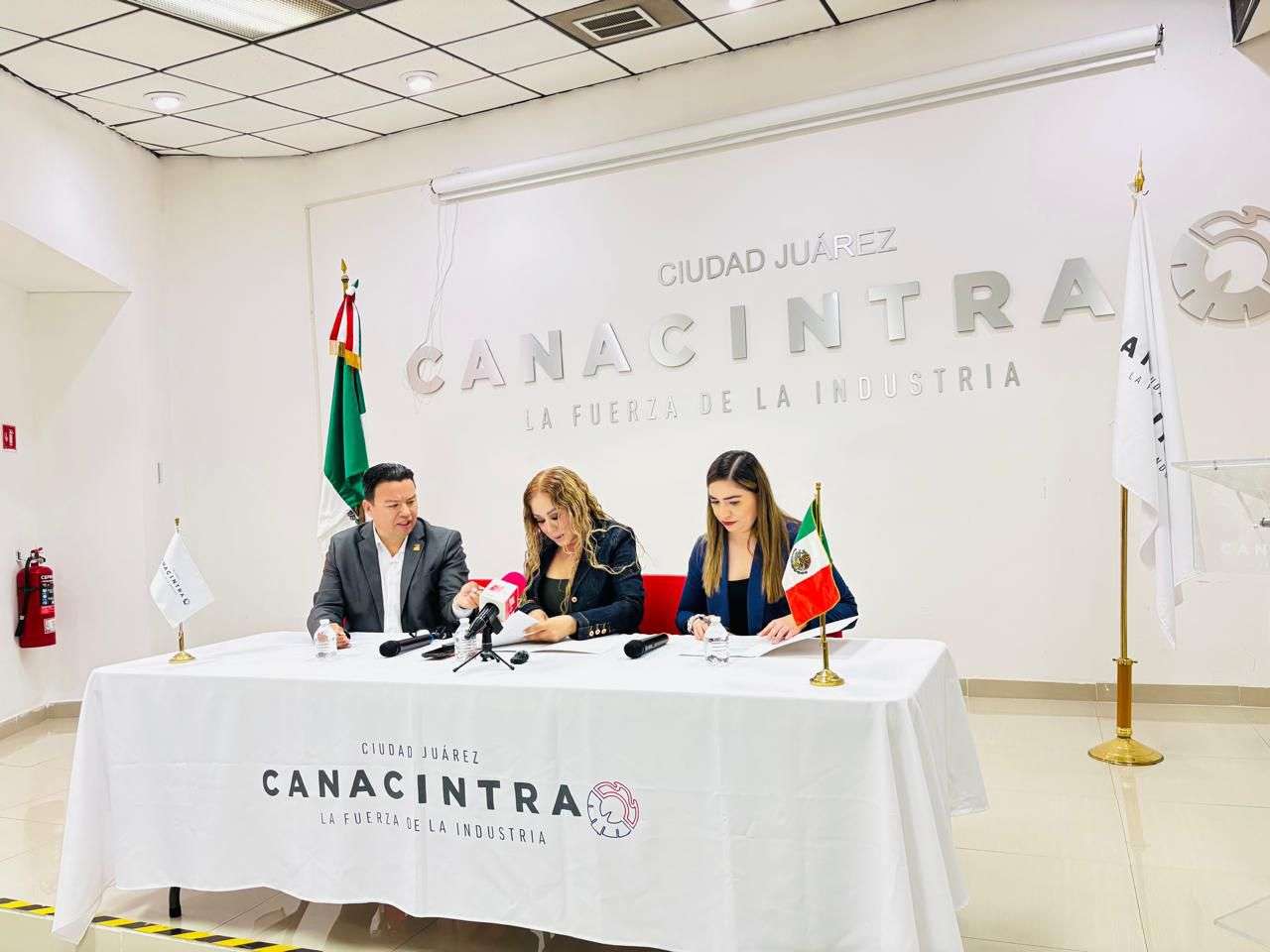 El acuerdo fue encabezado por la presidenta de CANACINTRA Juárez, Isela Molina, junto con la directora estatal de FONACOT en Chihuahua, Luisa Fernanda Sánchez Ramírez, y el director comercial regional norte de FONACOT, Adrián Herrera Zazueta.