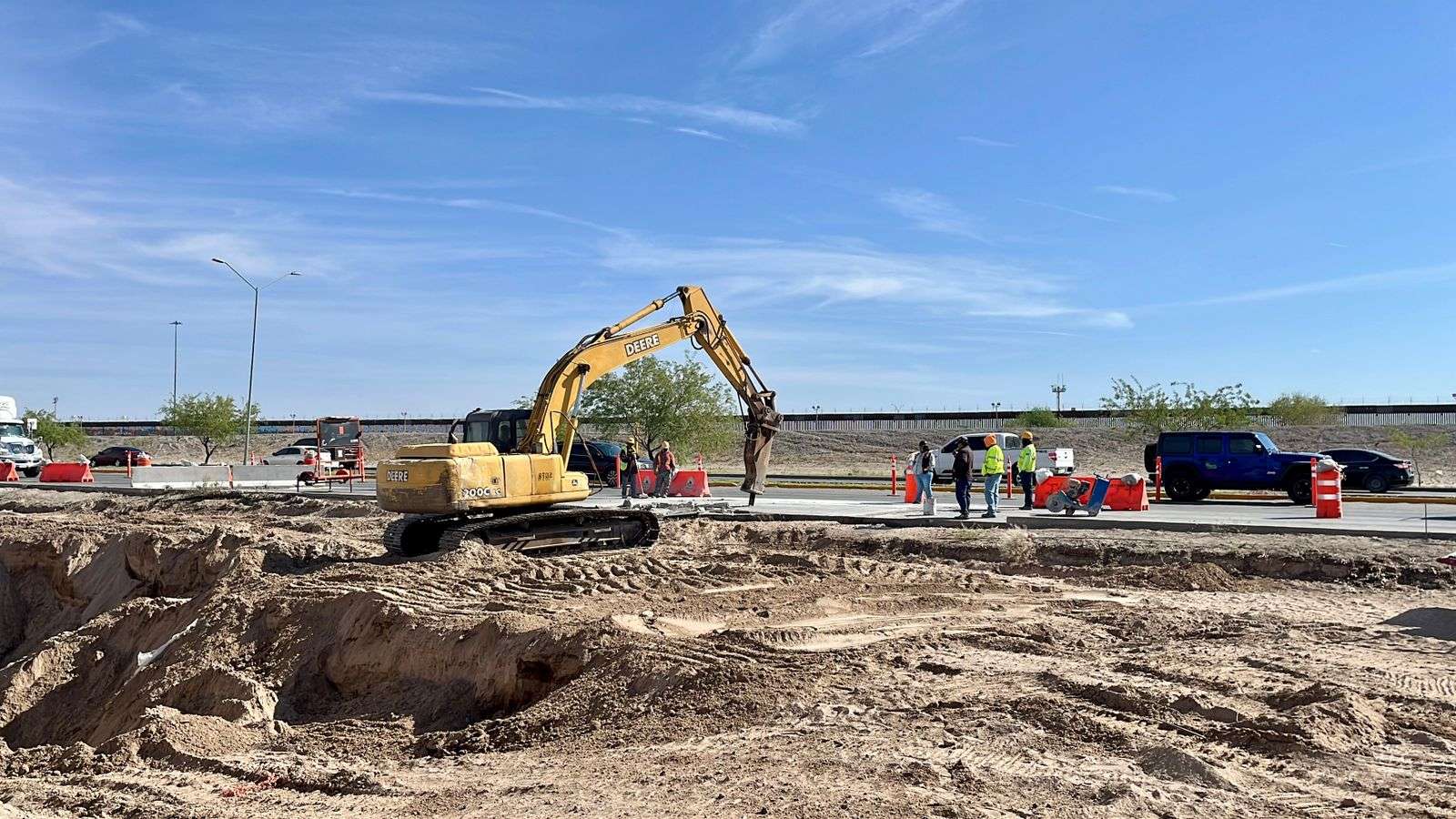 Ciudad Juárez.- La Junta de Agua y Saneamiento de Juárez trabaja en la conexión del nuevo colector Cuatro Siglos con la red existe, cerrando temporalmente un carril en la vialidad.