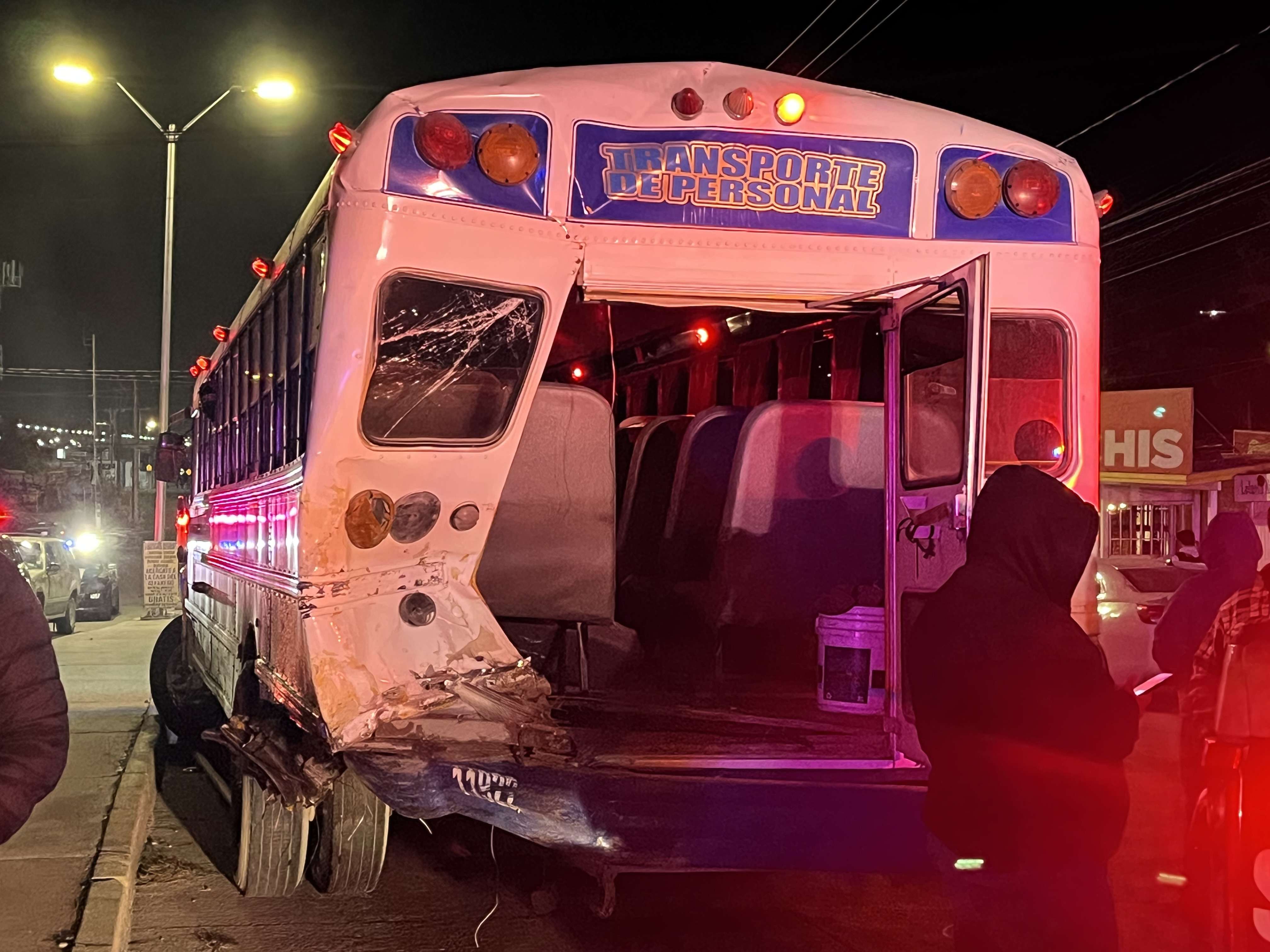 En cuanto al camión de transporte de personal, éste llevaba empleados de una maquiladora; únicamente dos mujeres resultaron con golpes leves y fueron atendidas en el sitio.