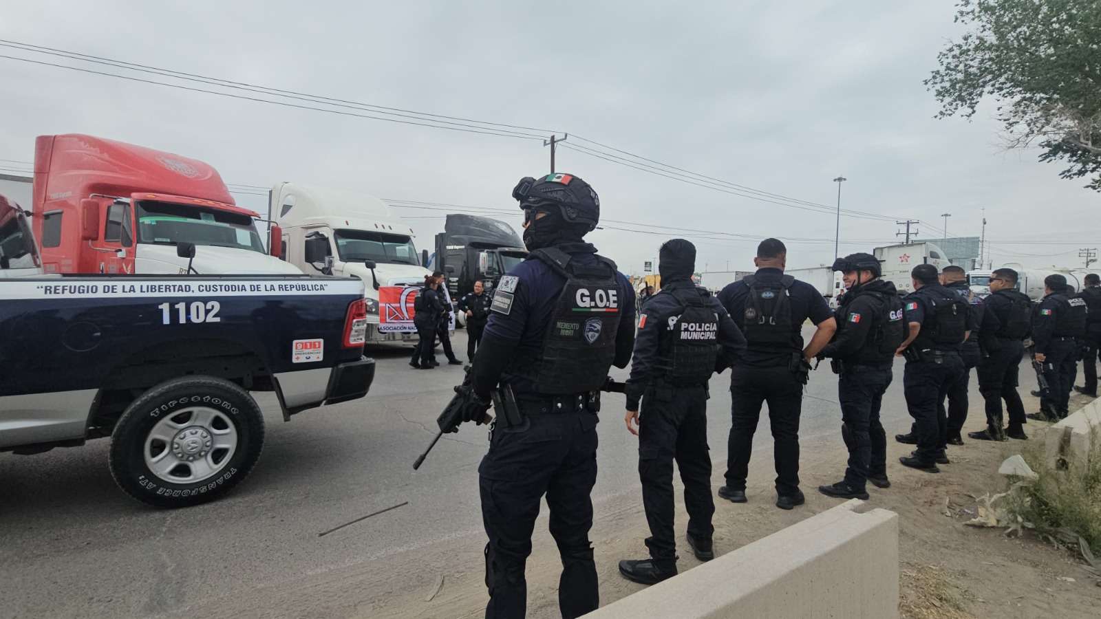 Ciudad Juárez.- El secretario de Seguridad Pública Municipal César Omar Muñoz Morales, atendiendo la instrucción del presidente municipal Cruz Pérez Cuéllar, acudió a la glorieta del kilómetro 20 sobre la carretera Panamericana para dialogar con transportistas que se manifestaban.