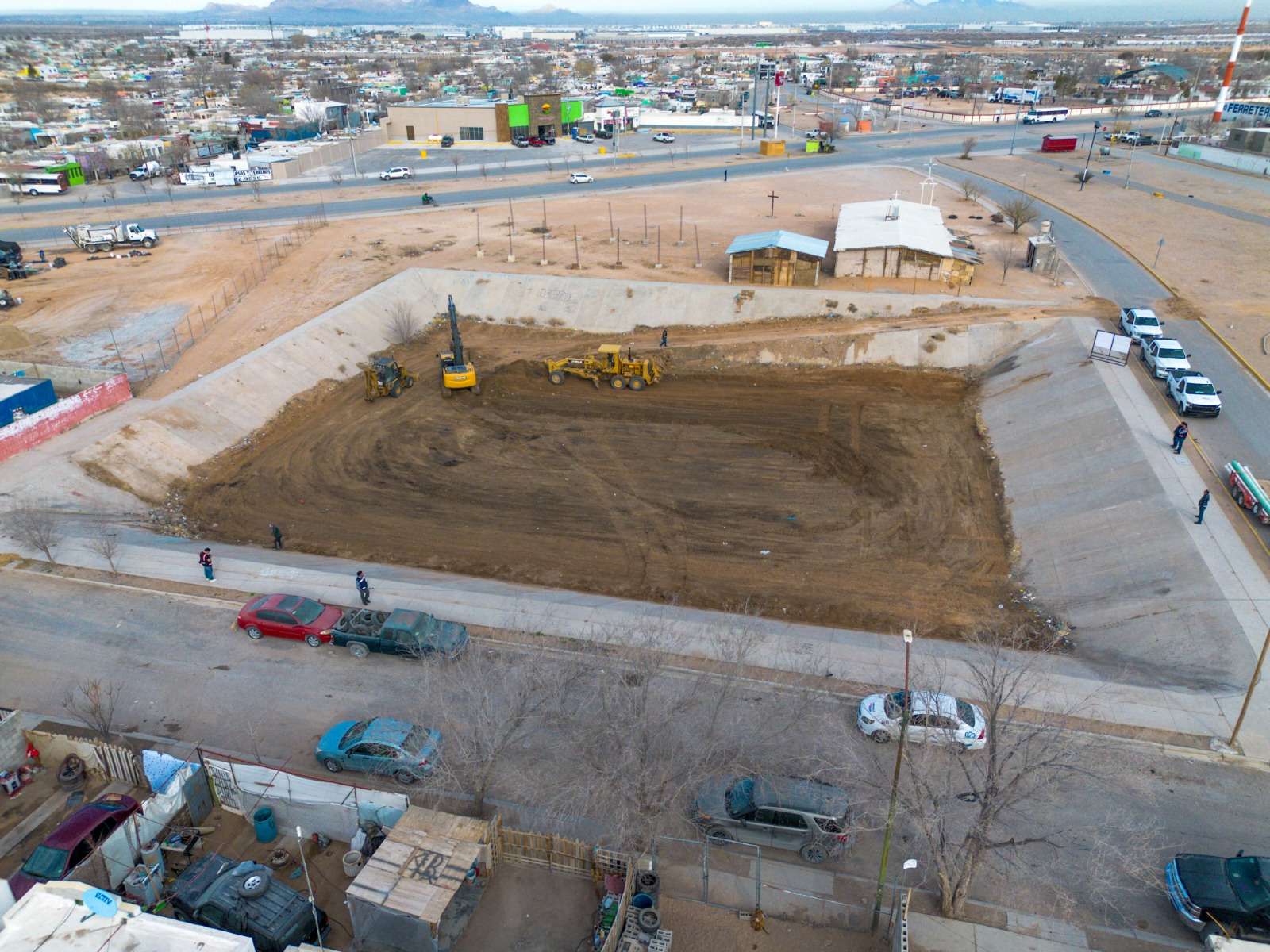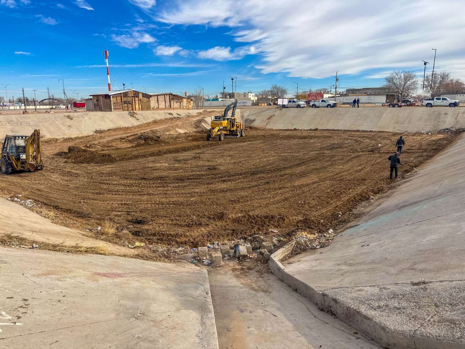 Ciudad Juárez.- La Junta Municipal de Agua y Saneamiento de Juárez, trabaja en la limpieza de un dique y bacheo de vialidades en el fraccionamiento Parajes de San José, para atender afectaciones ocasionadas por las recientes lluvias y brotes de drenaje.