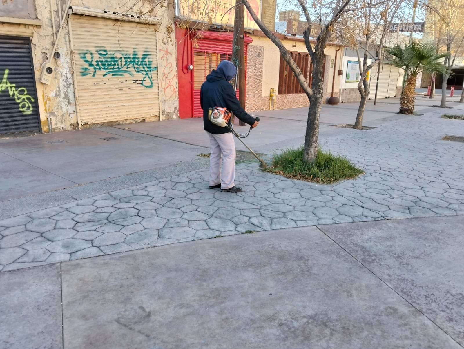 Ciudad Juárez.-Con el propósito de conservar en buenas condiciones los espacios públicos y ofrecer áreas limpias y seguras para la ciudadanía, el personal de la Dirección de Parques y Jardines llevó a cabo trabajos de mantenimiento en la Plaza Tin Tan, ubicada en la avenida 16 de Septiembre.