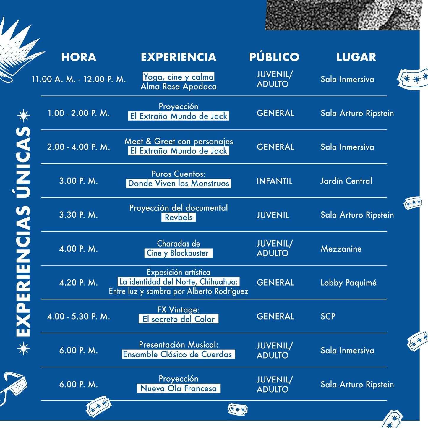 A la 1:00 p.m. se proyectará el clásico “El extraño mundo de Jack” en la Sala Arturo Ripstein, seguido de un “Meet & Greet” con personajes de la película de 2:00 a 4:00 p.m. en la Sala Inmersiva. Para el público infantil, a las 3:00 p.m. se presentará la actividad “Puros Cuentos: Donde viven los monstruos” en el Jardín Central.